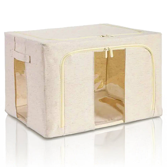Foldable Storage Box Double Zipper Cloth Organizer – Beige Large Cloth Box with Lid & Metal Handles for Wardrobe, Sweaters, Pants – 1 Pack 42×40×60 cm