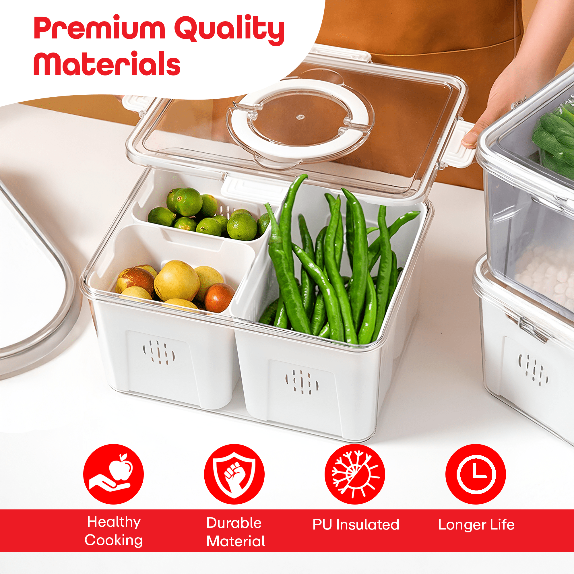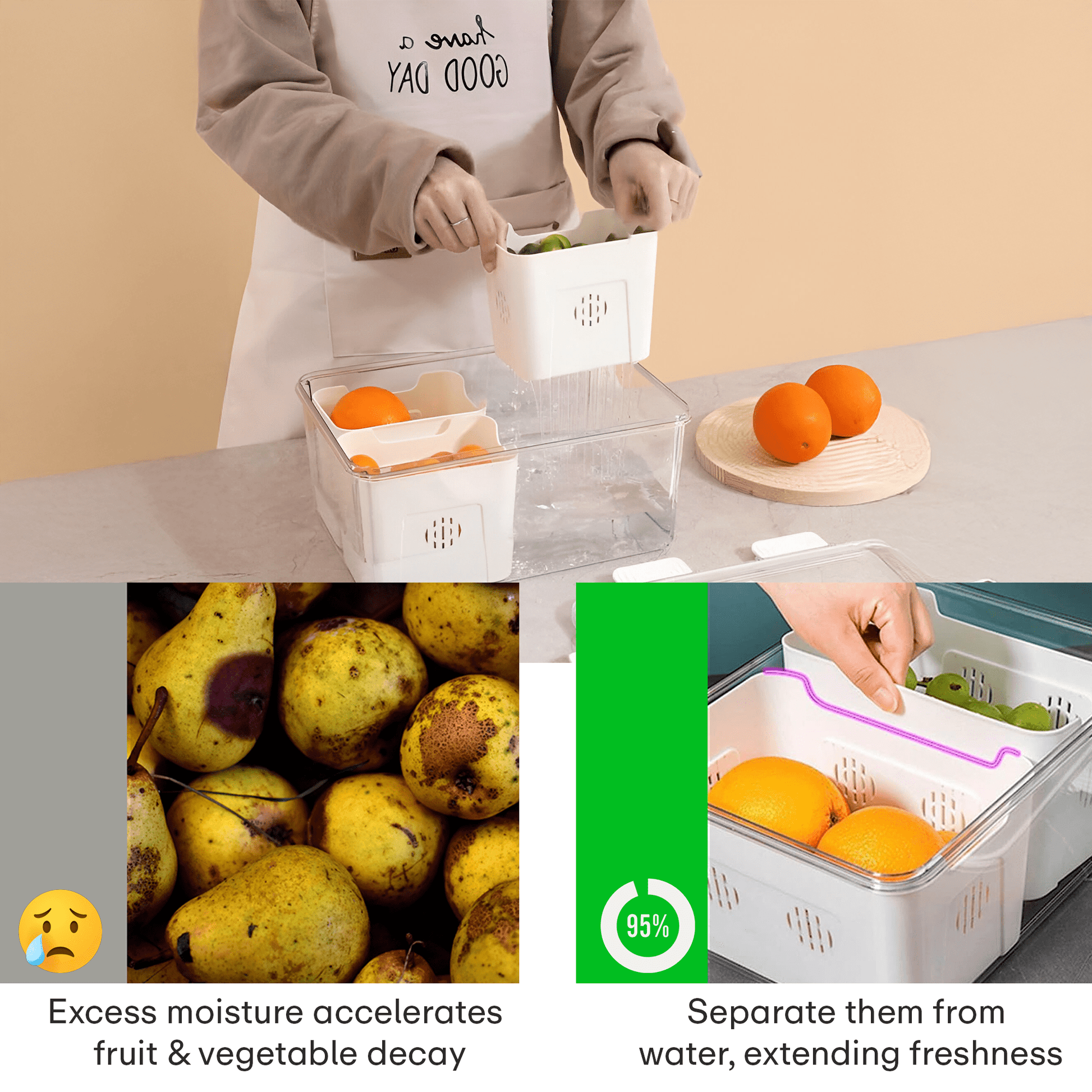 【3 In 1 Fridge Organization Box Keep Vegetables & Fruits Fresh】:food Storage Containers With Lids Make The Products Fresher. The Partition Design Is Used For Sorting Storage, Such As Salad, Lettuce, Carrot, Potato, Cucumber, Tomato, Onion, Pepper, Mung Bean, Apple, Orange, Banana, Berry, Strawberry, Grape, Melon , Lemon, Egg, Meat And Fish.