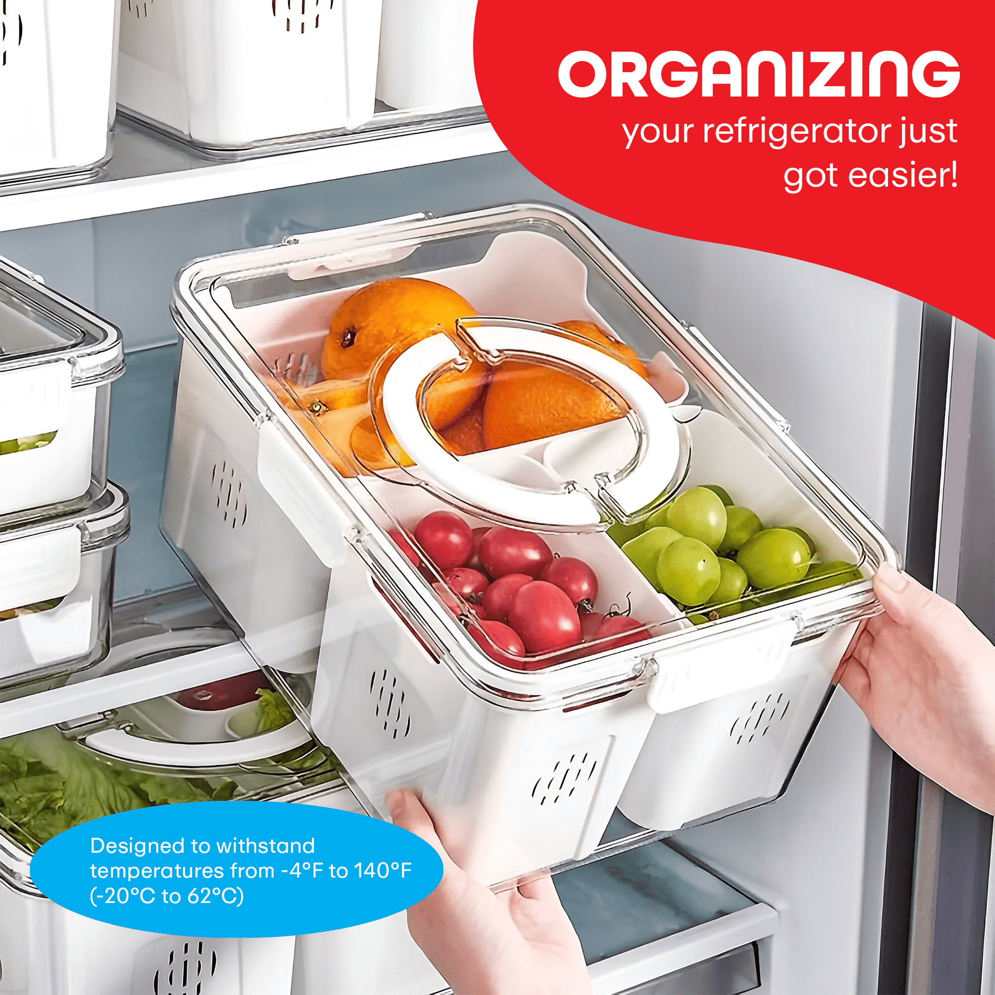 【airtight Freezer Organizer Bins】: The Water Tight Rubber Seal Between Container And Lid Make This Divided Stackable Container Work Great For Keeping Veggies Fresh And Meal Prep. This Snack Fridge Container Is Airtight And Can Be Used Without The Inner Basket If Needed.