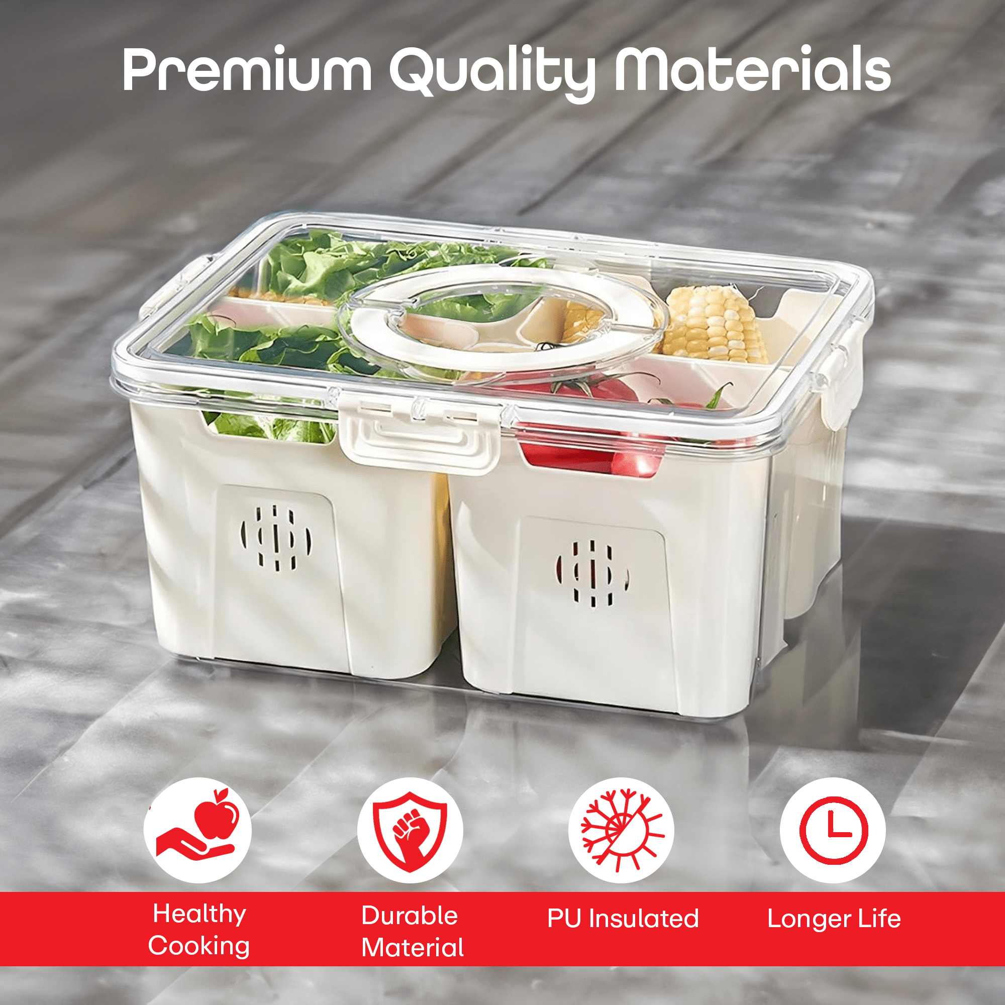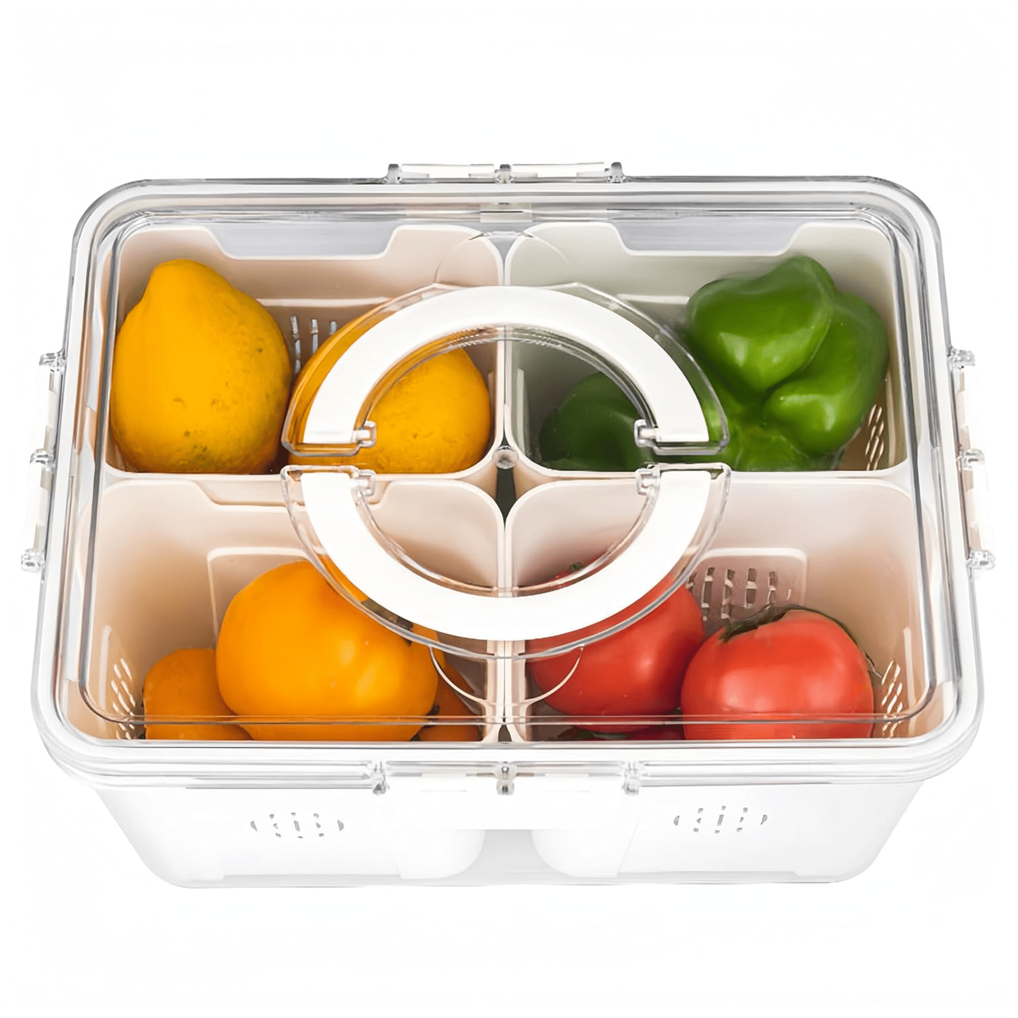 Divided Produce Containers for Fridge - The fruit storage containers have 4 dividers to use to separate certain fruits and vegetables so you can have more than one kind of food in a produce saver. Refrigerator organizer bins keep fridge organized and fruits fresh.