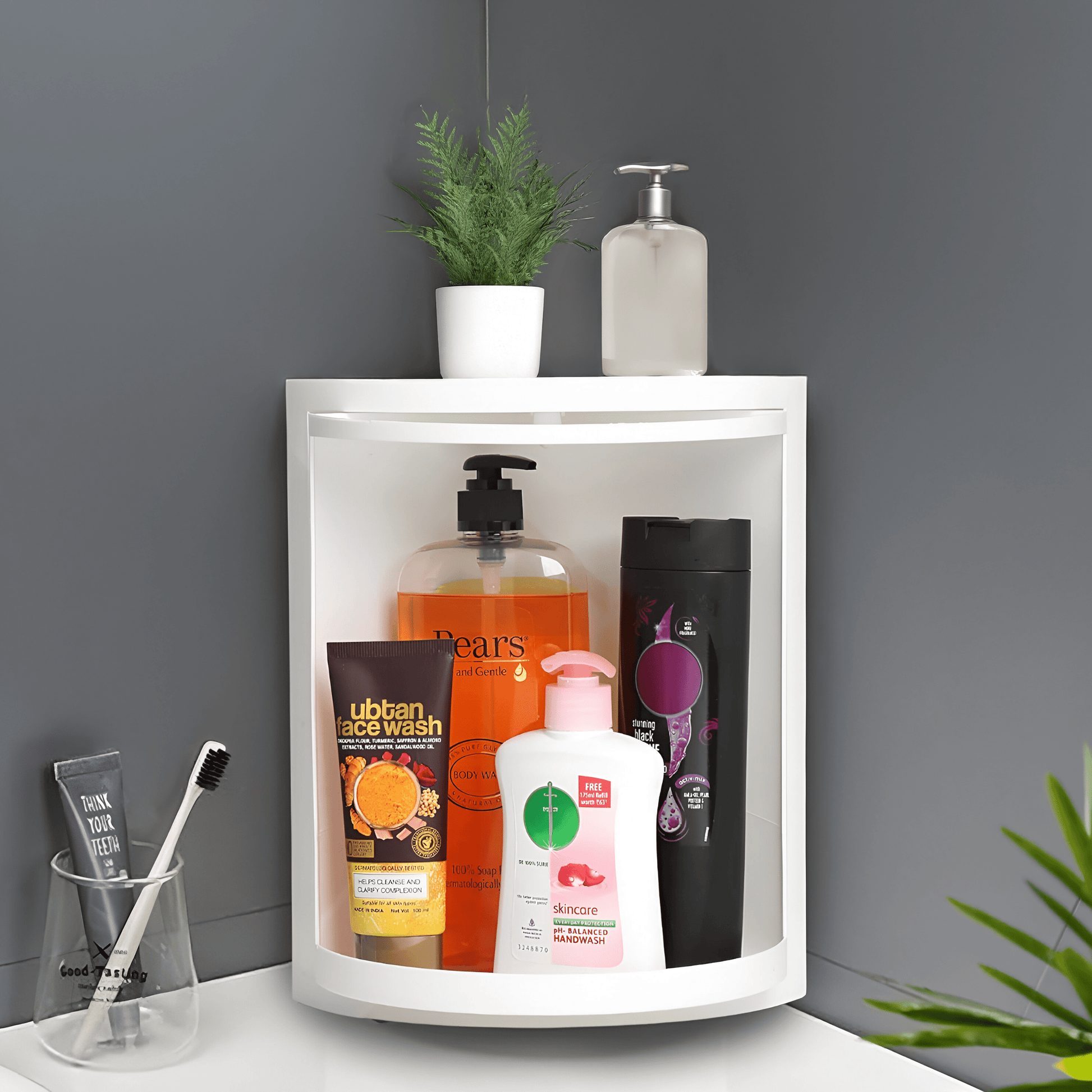 PRIME PICK Rotating Bathroom rack is covered, which can save the stored items from being wet by water, effectively solving your troubles.The bottom layer of the storage rack can be disassembled and cleaned, and drained to keep the soap dry. Our triangular rack can be rotated 360°, easy to use. The front of the shelf is covered, it can effectively prevent dust and keep the stored items clean. It is not like ordinary storage racks. It is as easy to accumulate dust. The triangular soorage rack can be placed in the bathroom, kitchen, and dressing table. It has three layers of large capacity, can be placed in cosmetics or daily necessities, and can be easily stored to make your desktop clean and tidy.
