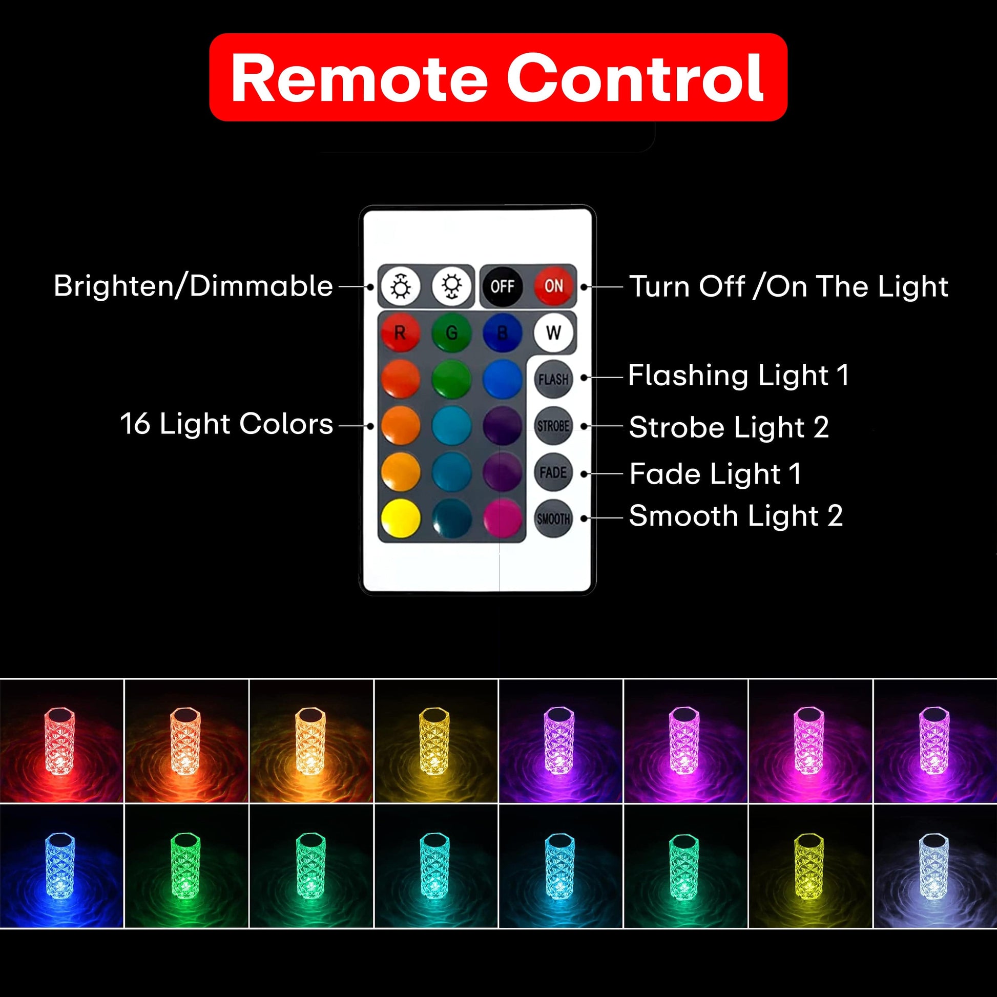 Package Content: 1 x Rose touch light Diamond Crystal Table Lamp With USB Cable, touch lamp Remote Control