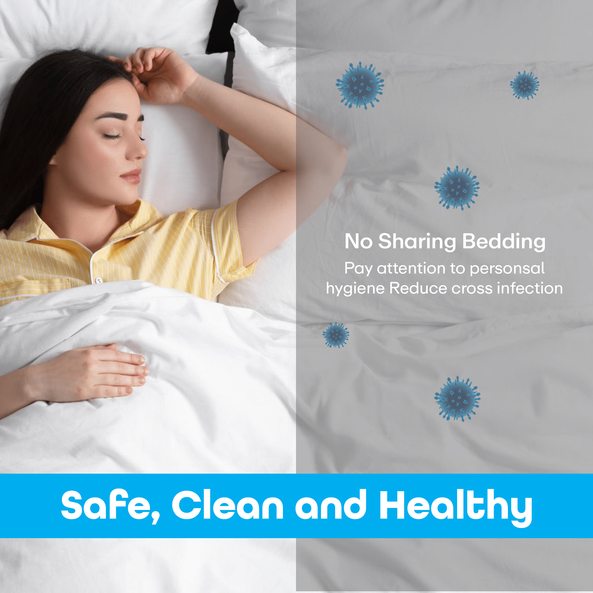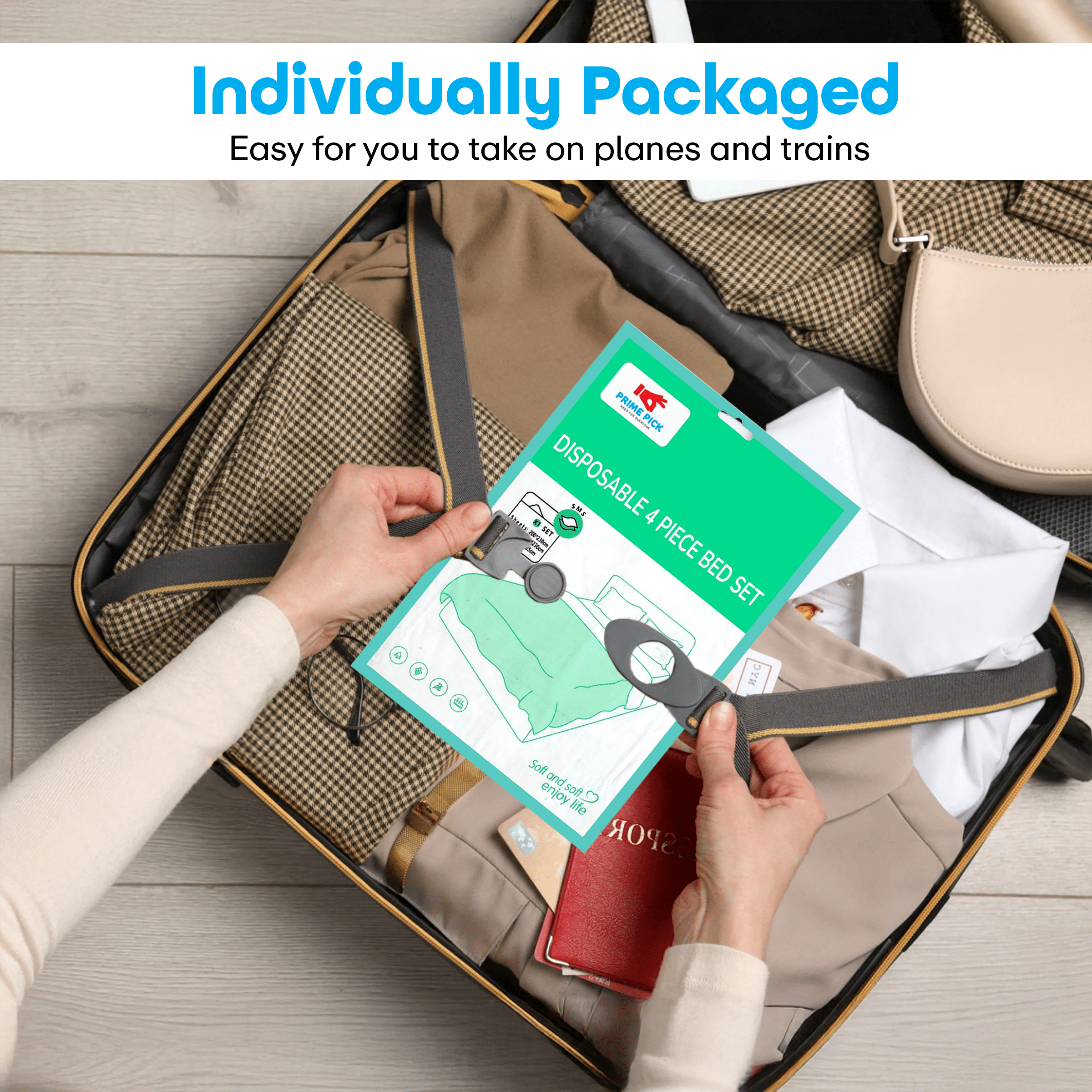 【SAFE AND HYGIENIC】Do you often worry about dirty and smelly hotel sheets? Our disposable bed sheet set is the perfect solution for you. With our high-quality disposable sheet, you can enjoy a comfortable and hygienic sleeping environment without the hassle of unclean sheets on hotel.