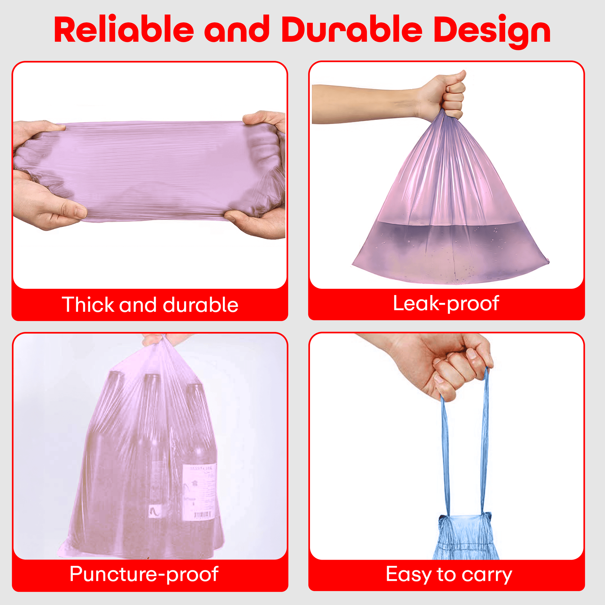High Quality Material: The garbage bag is made of PE material, high toughness, not easy to break or break when using. It also has a thicker design, strong load bearing capacity. It also features no leaks or odors. Make it more durable and environmentally friendly.