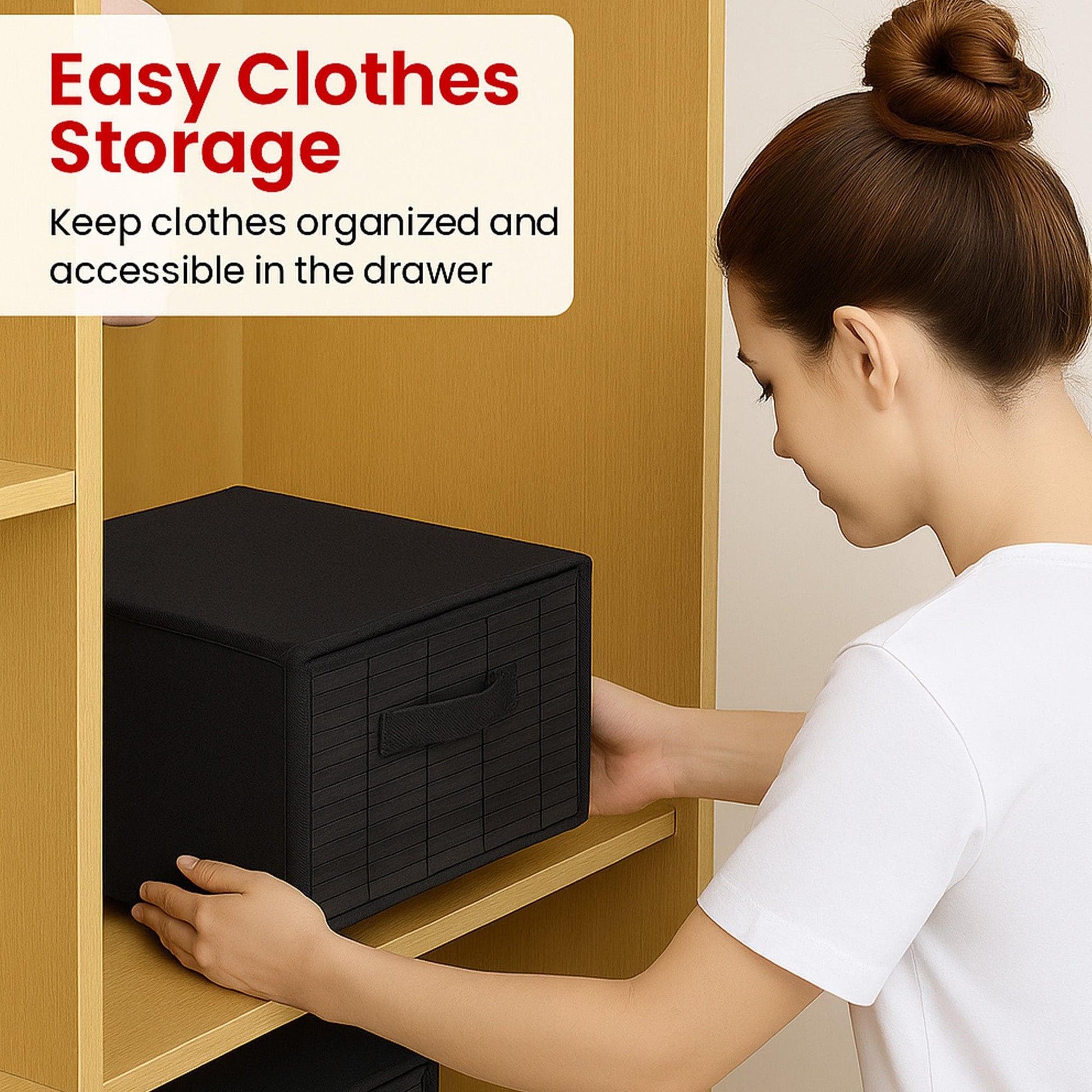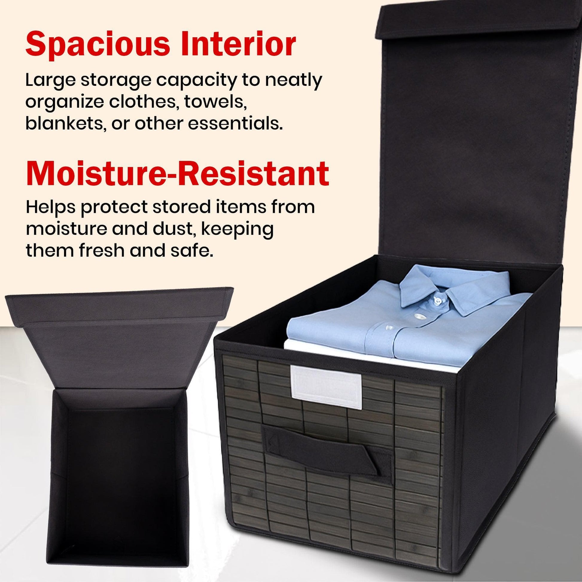 Organize your clothes and accessories effortlessly with this Large Bamboo Cloth Organizer. Featuring a sturdy fabric body, bamboo panel front, and convenient handle, this storage box is perfect for keeping clothes, bedsheets, sarees, or daily essentials neatly arranged. Its spacious design (38cm x 29cm x 2cm) makes it suitable for wardrobes, shelves, and under-bed storage