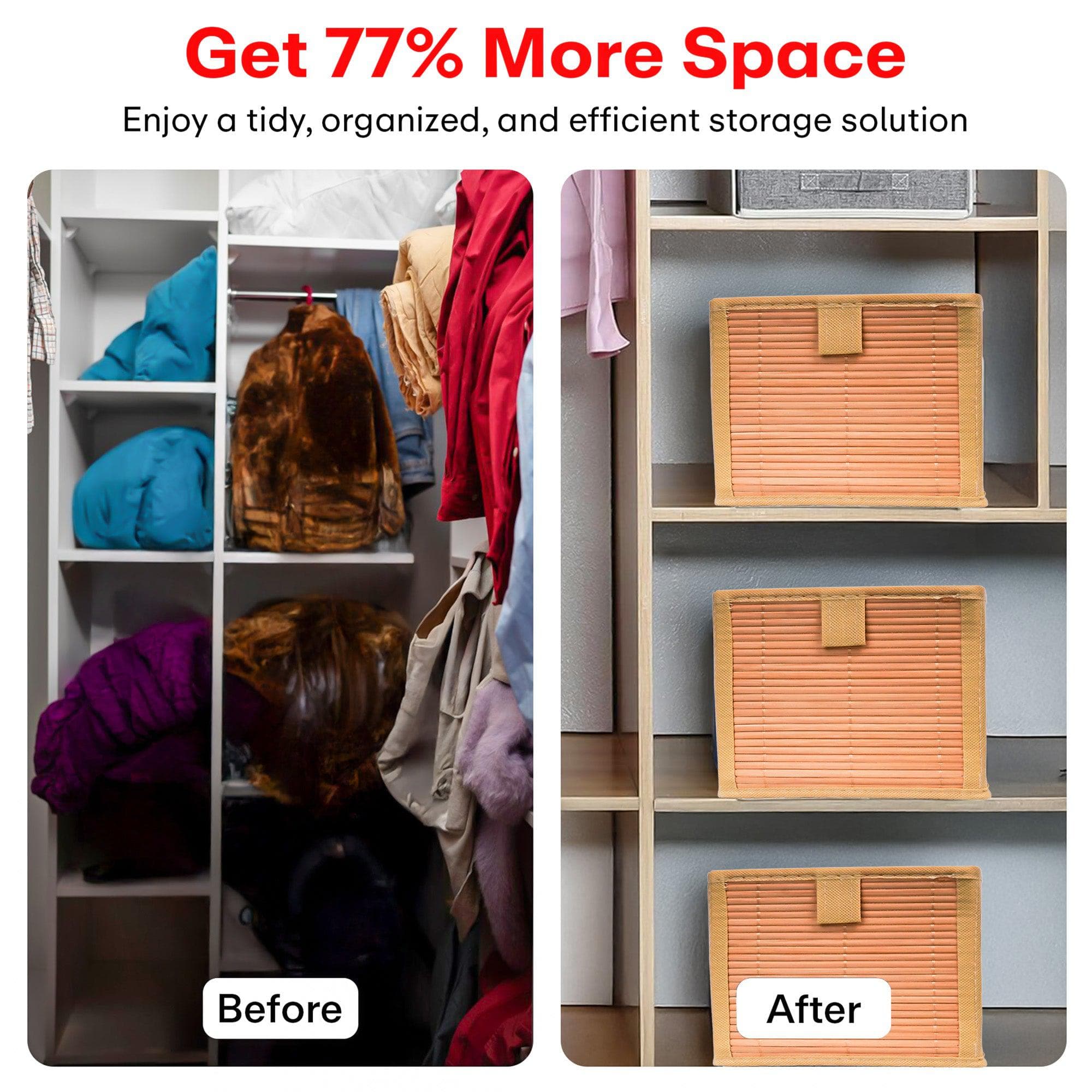 Bring elegance and organization to your wardrobe with this Beige Bamboo Cloth Organizer Box. Made with eco-friendly bamboo and durable fabric, it provides a neat way to store clothes, accessories, socks, and undergarments. The foldable design ensures easy storage when not in use, while the neutral beige shade adds a warm, stylish touch to your home décor.