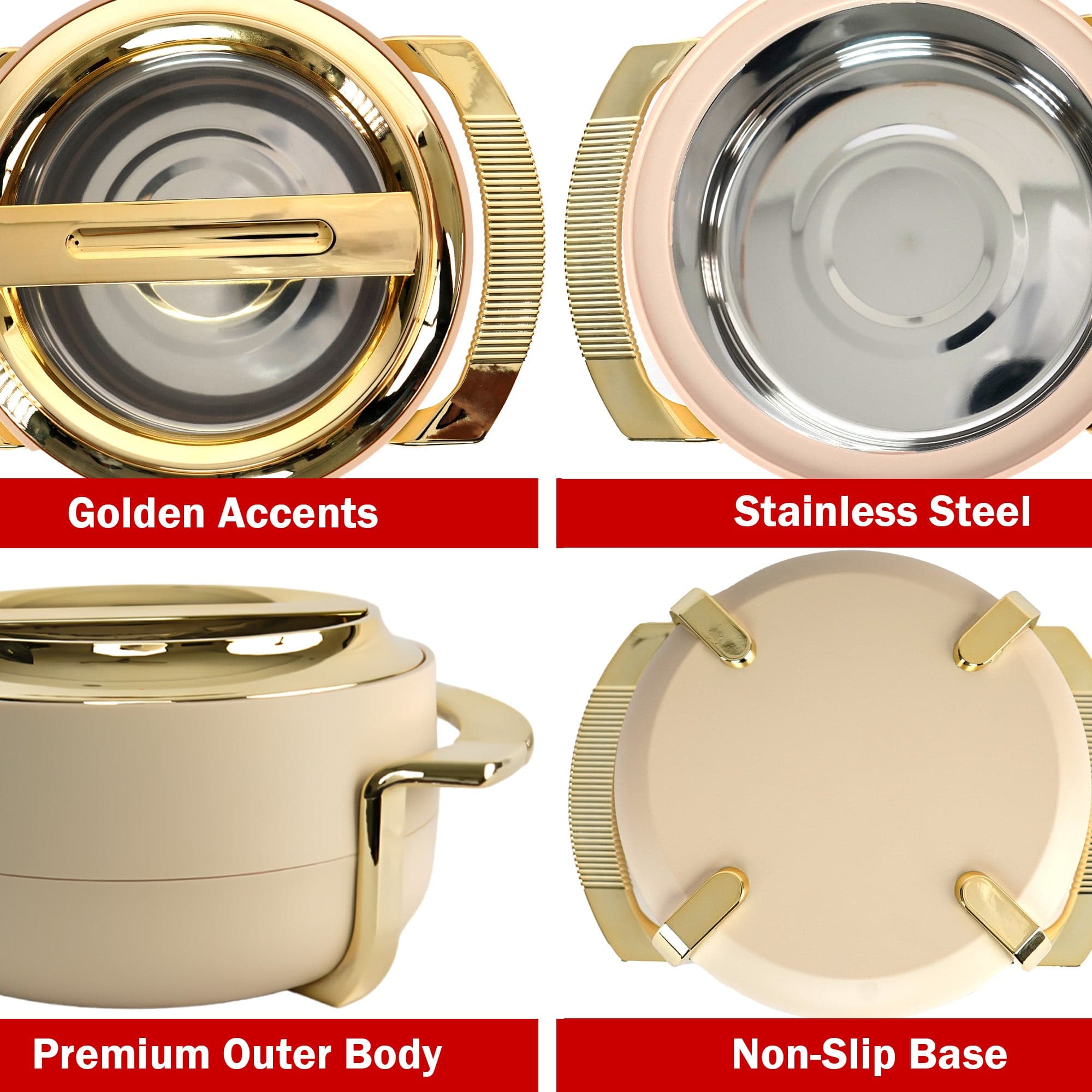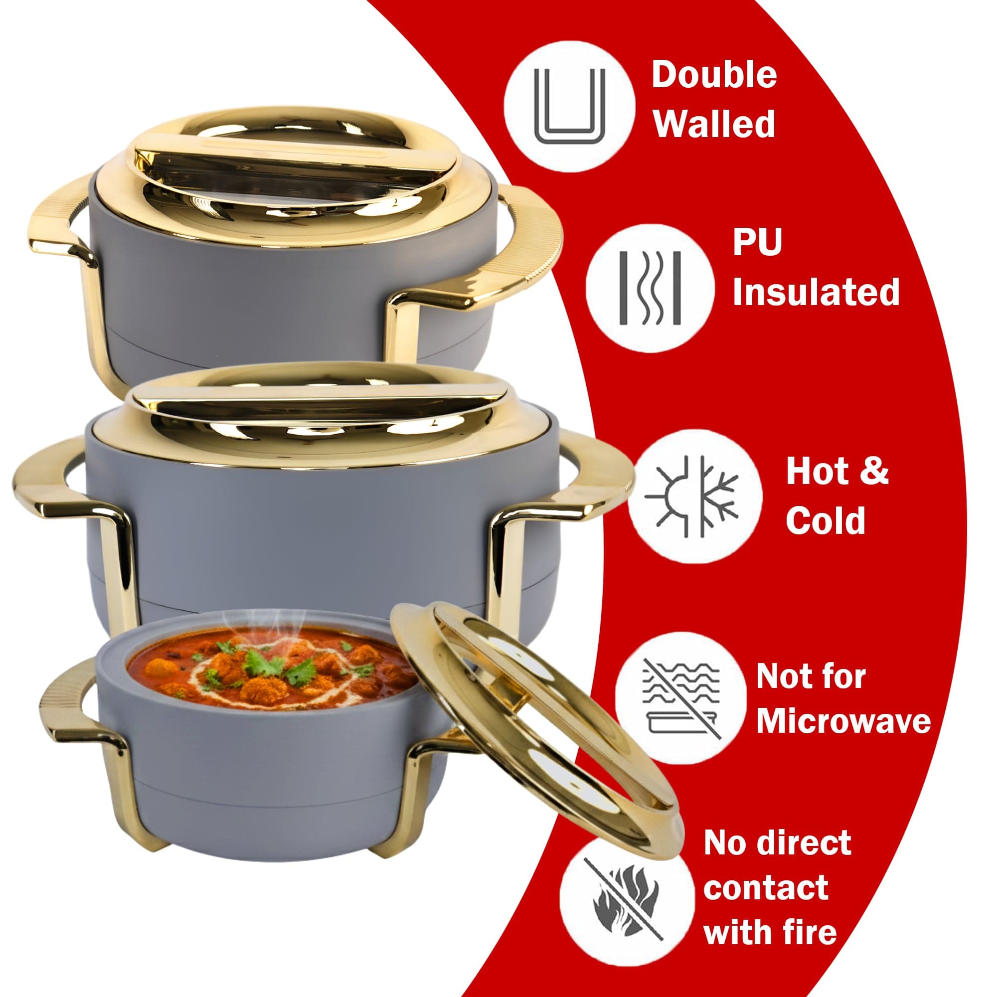 The elegant off-white finish adds a touch of sophistication to your dining table, making it perfect for everyday use, family dinners, and festive occasions. Ideal for keeping rice, chapatis, dal, sabzi, and curries warm and delicious without reheating.
