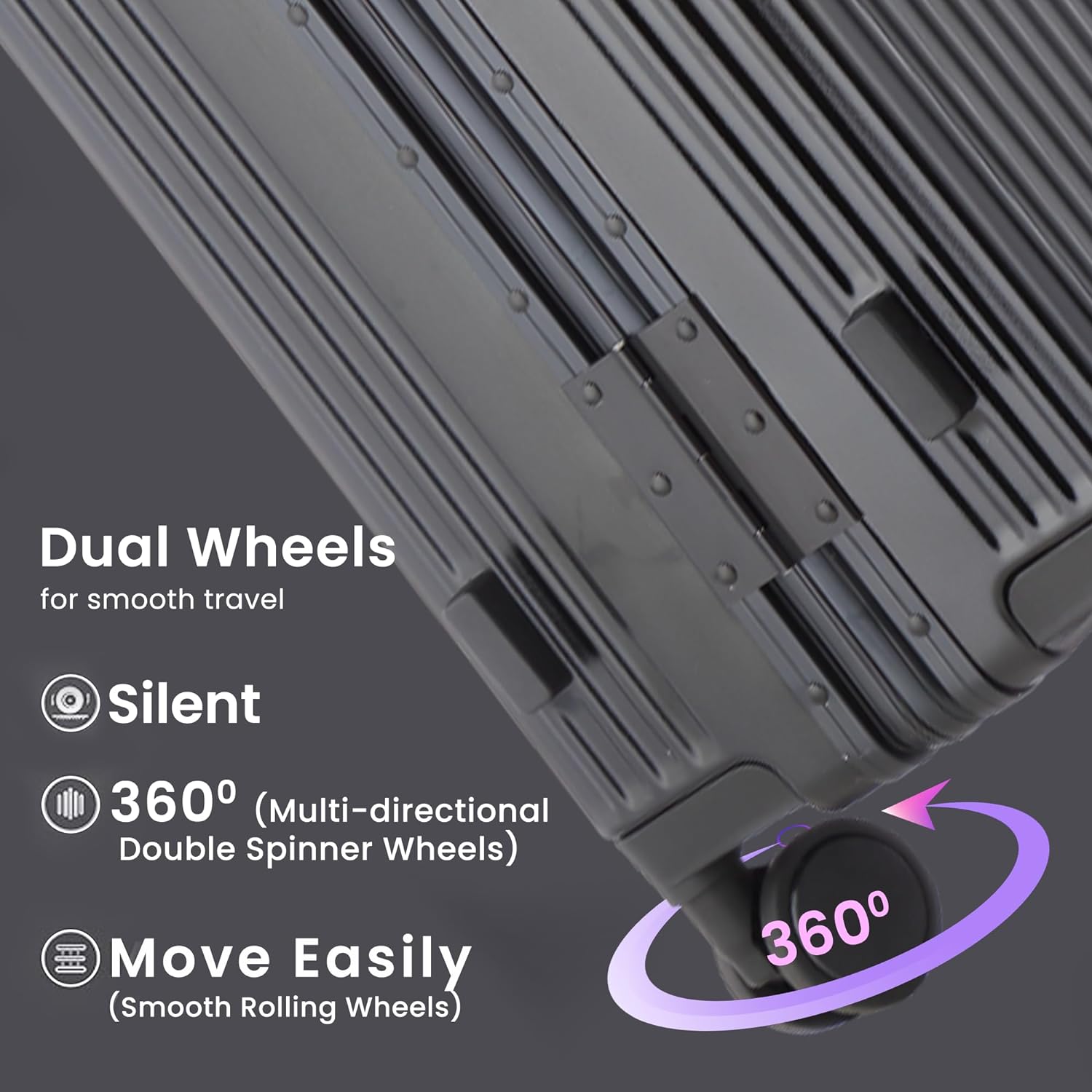4 DOUBLE SPINNER SUSPENSION WHEELS – The Range features 4 Smooth 360 Degree Spinner Wheels with Suspension, to give you an effortless Experience on the go. The wheels have a Spring-Loaded Caster Design for Smooth & Comfortable rolling to reduce Shock & Vibration.