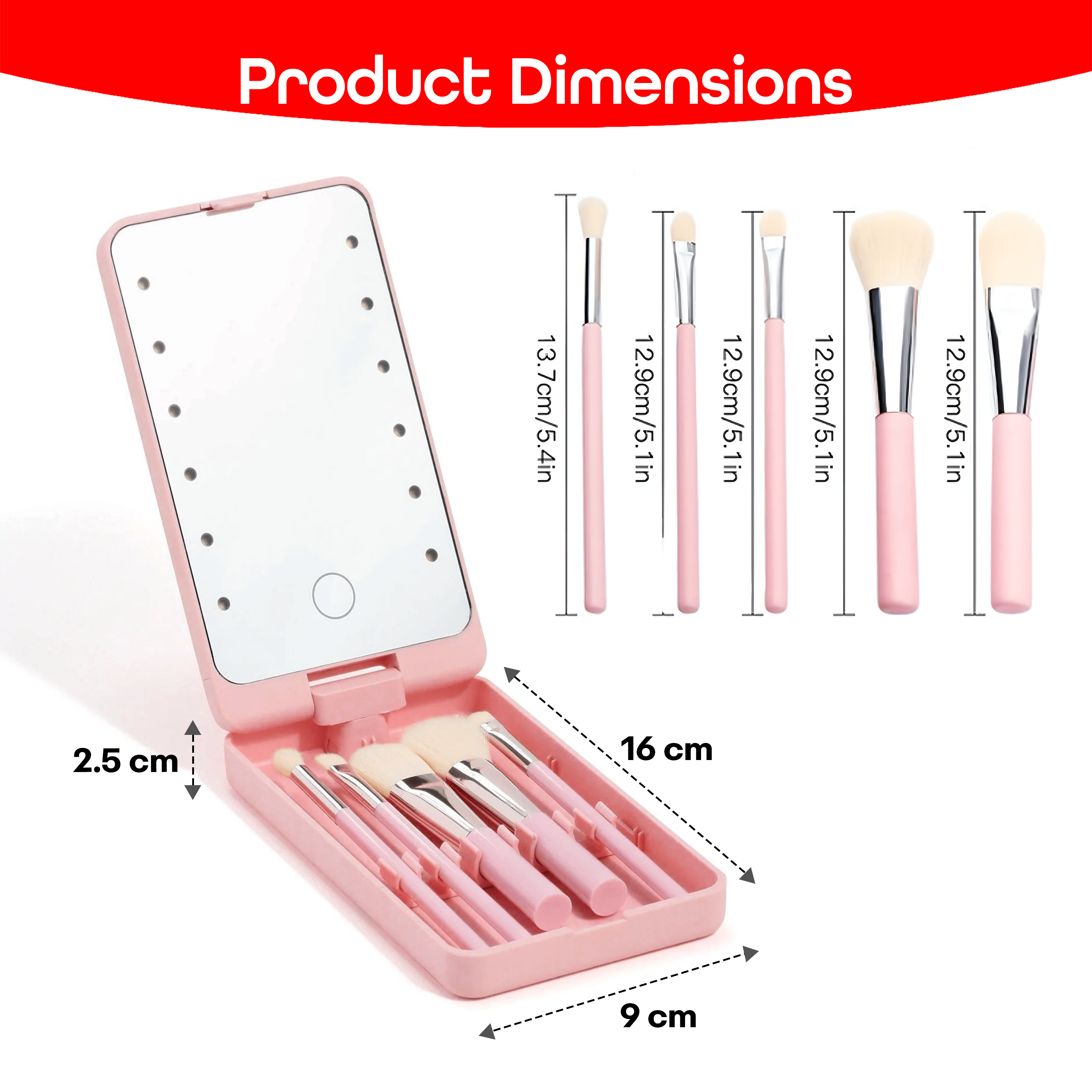 CONVENIENT TRAVEL COSMETIC MIRROR: This stylish 2 in 1 LED makeup mirror with makeup brushes is definitely a great choice for anyone who need to always take all those makeup products and tool on the go. The compact size makes it easy to fit in your luggage. Crafted with premium ABS and acrylic HD mirror ensures the both durability and stylish.