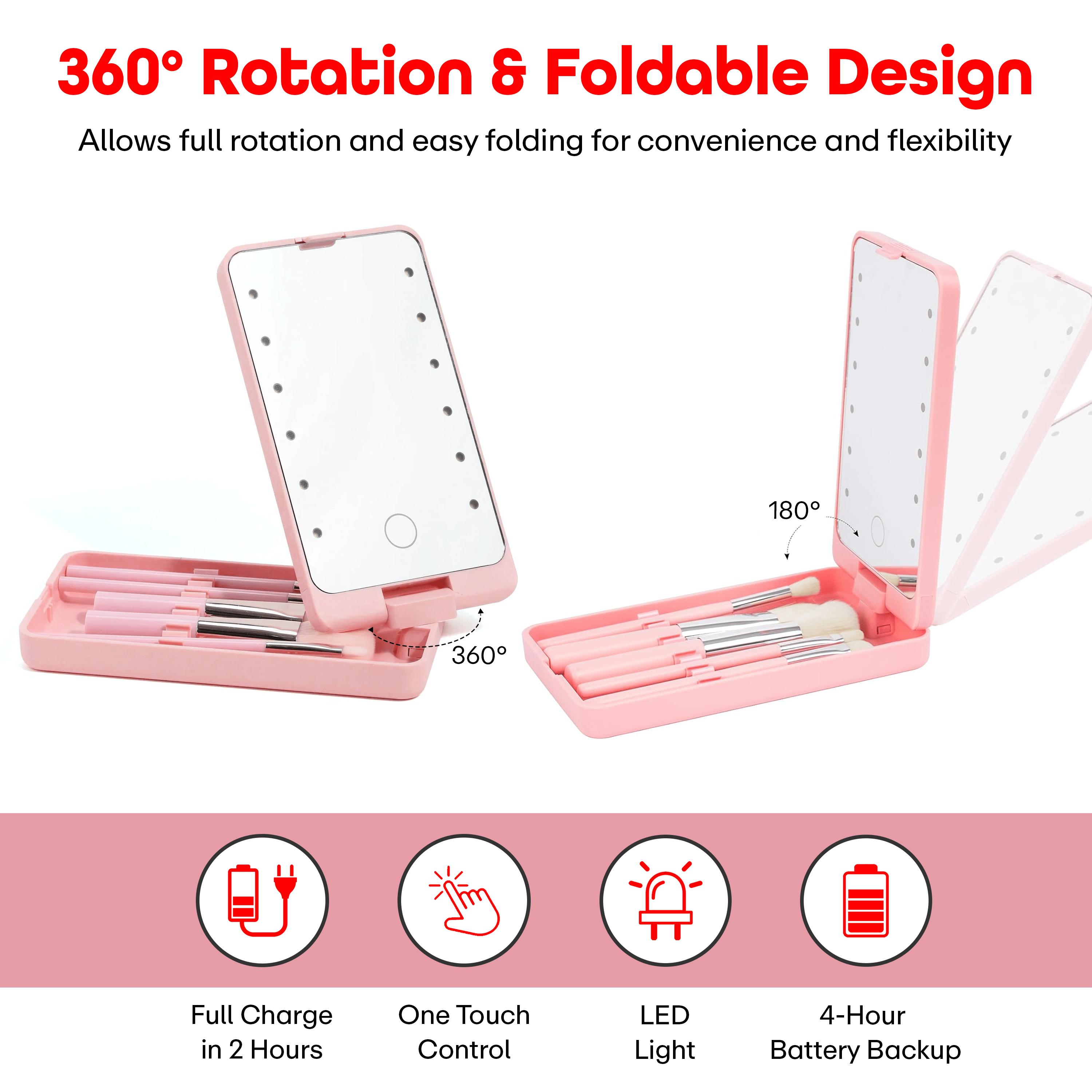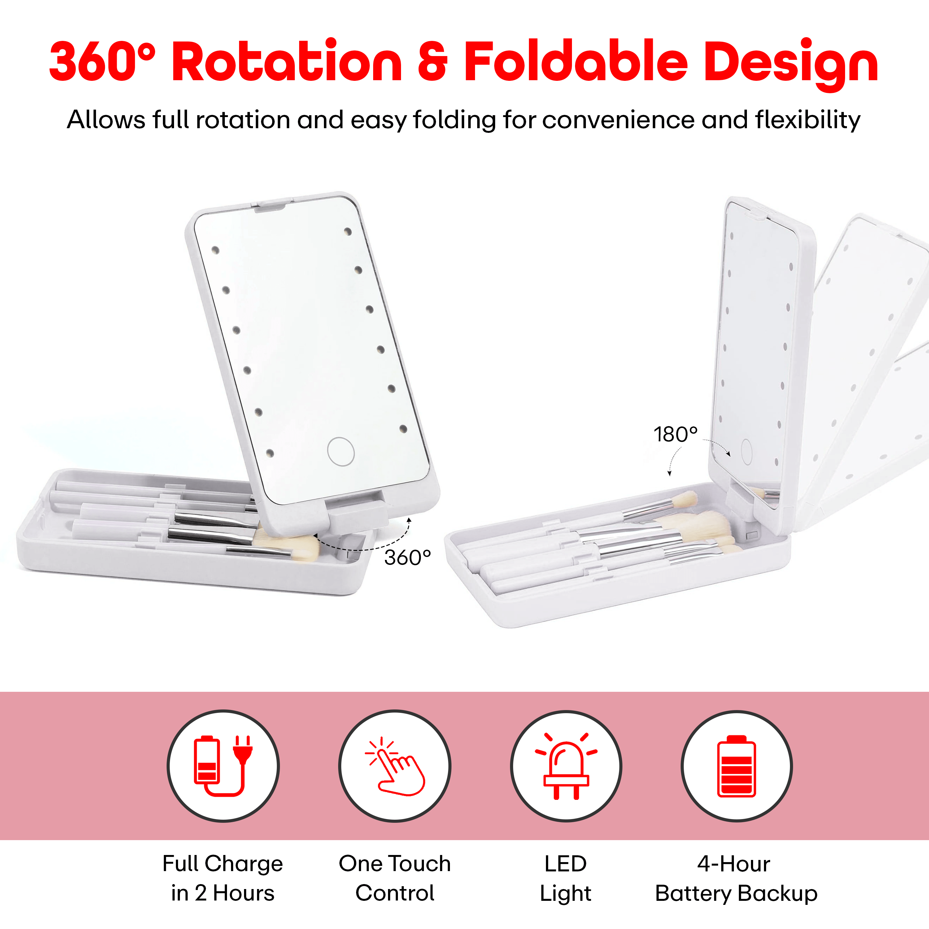 • Folding and LED light with makeup brushes storage design for conveniently using and carrying during travel.