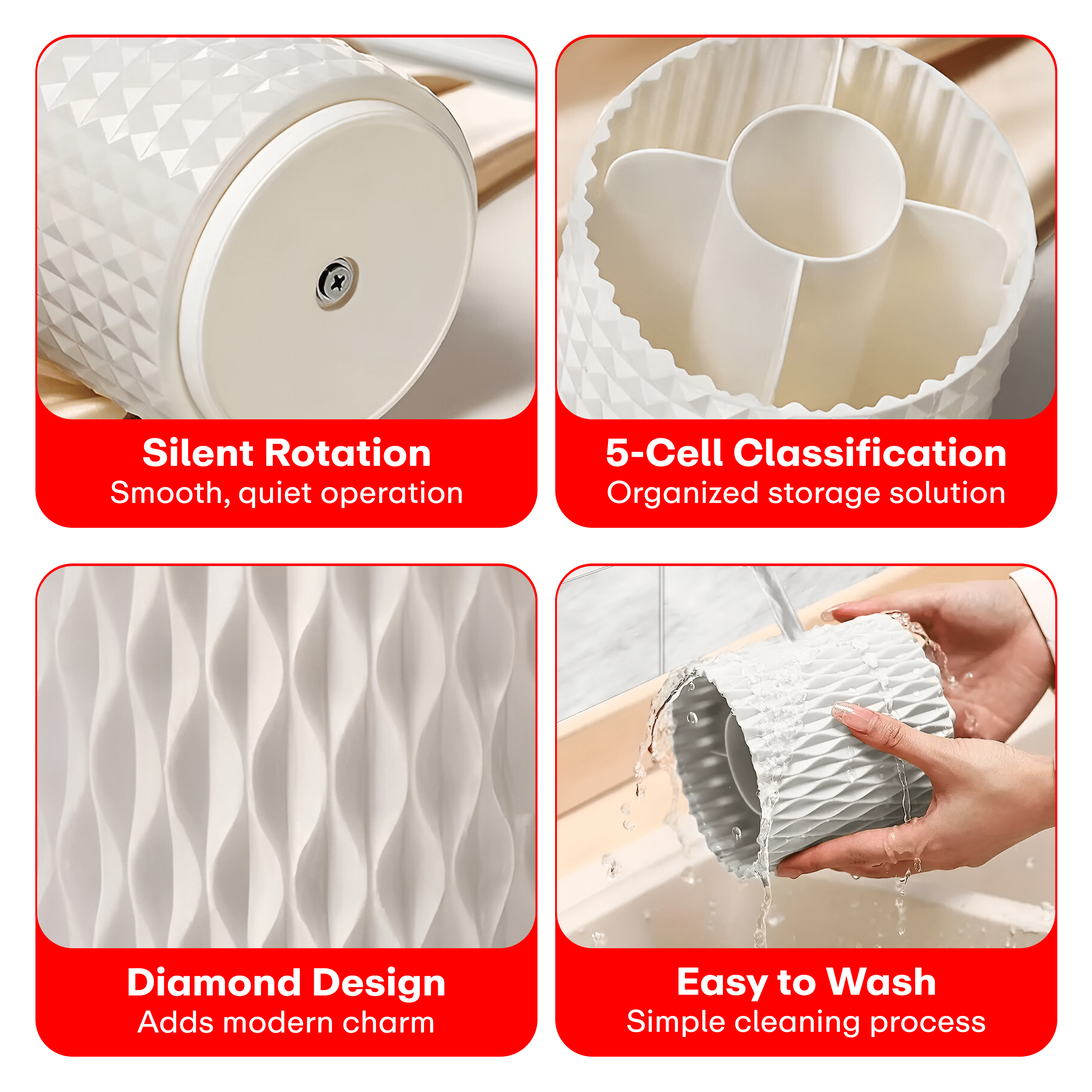 [360-DEGREE ROTATING DESIGN] - This makeup brush holder has an upgraded 360-degree rotatable base of ball bearing technology at the bottom to ensure the bottom rotates silky smoothly like butter, switching to your favorite angle at will.