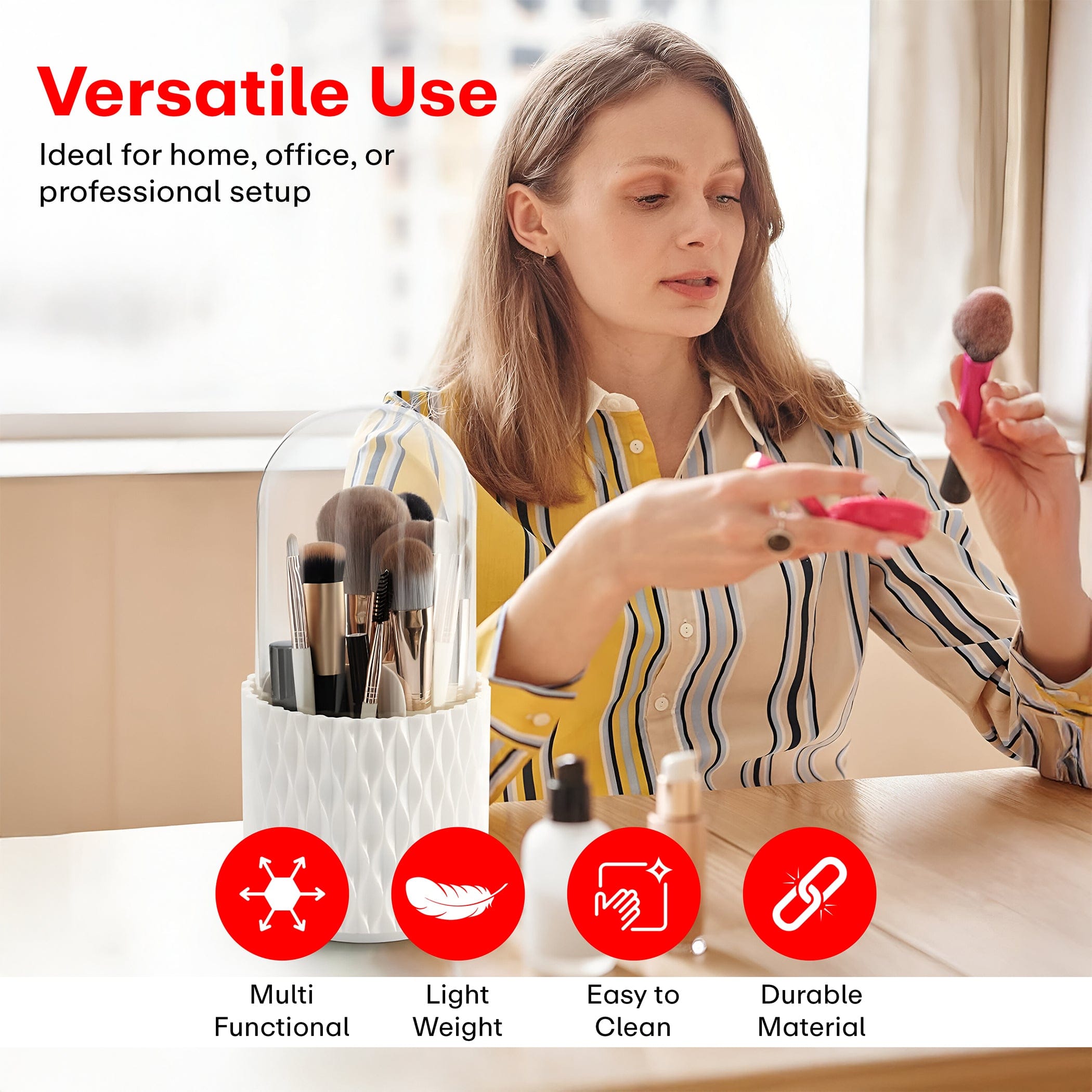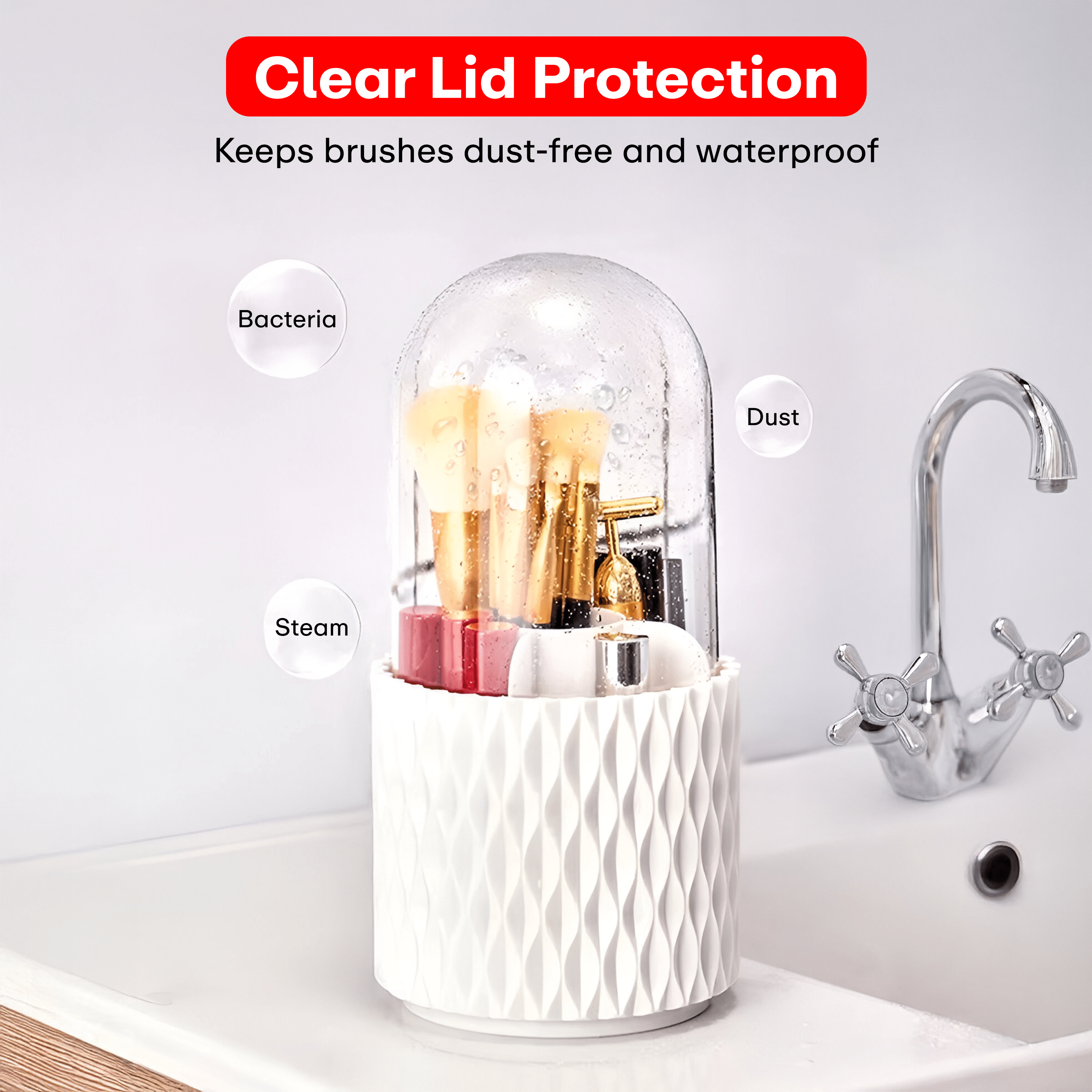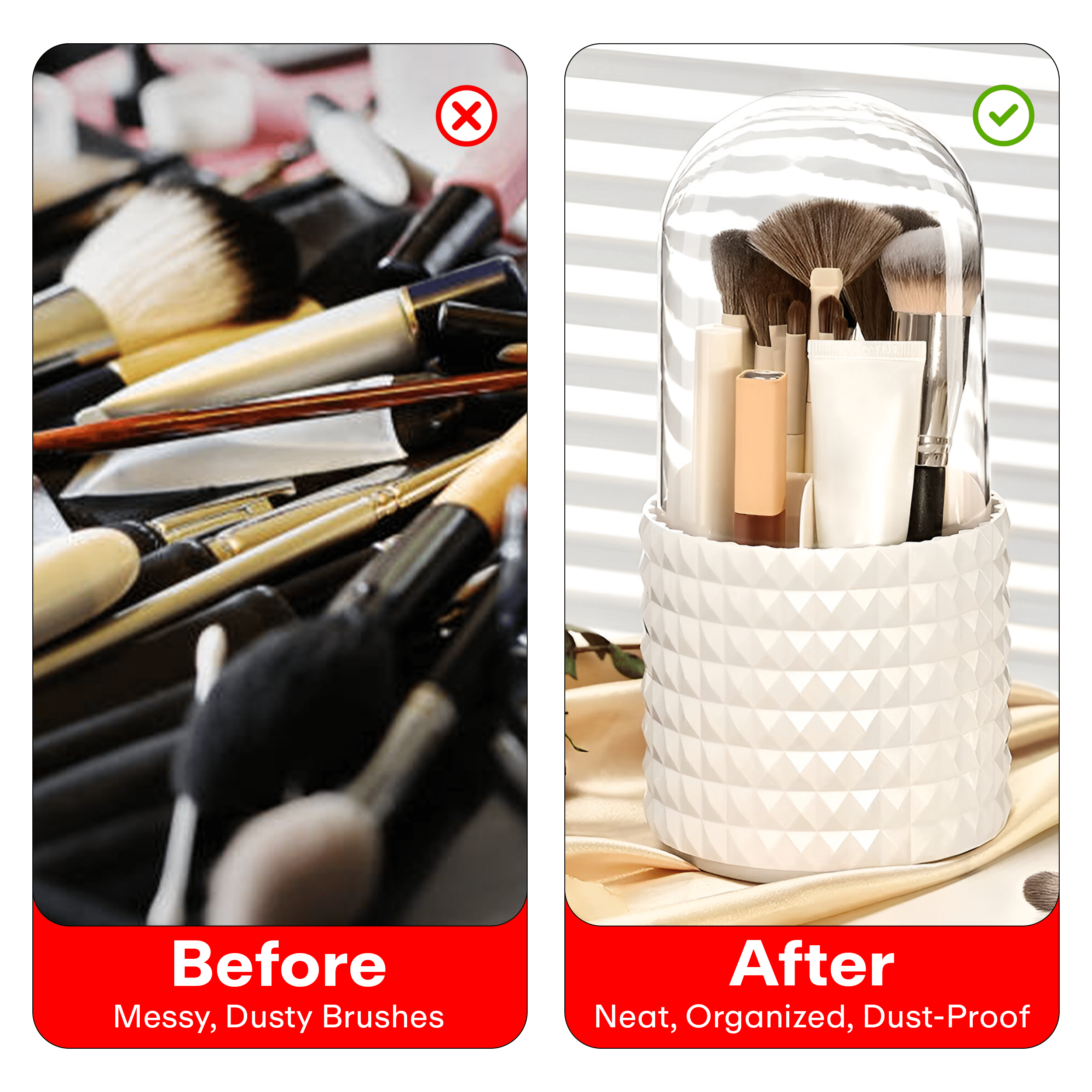 [MAKEUP BRUSH HOLDER WITH LID] - Our brush organizer includes a clear acrylic lid that effectively prevents dust from falling on the brushes and no makeup powder from flying around. Clear makeup organizer has a large capacity to store a large number of brushes.