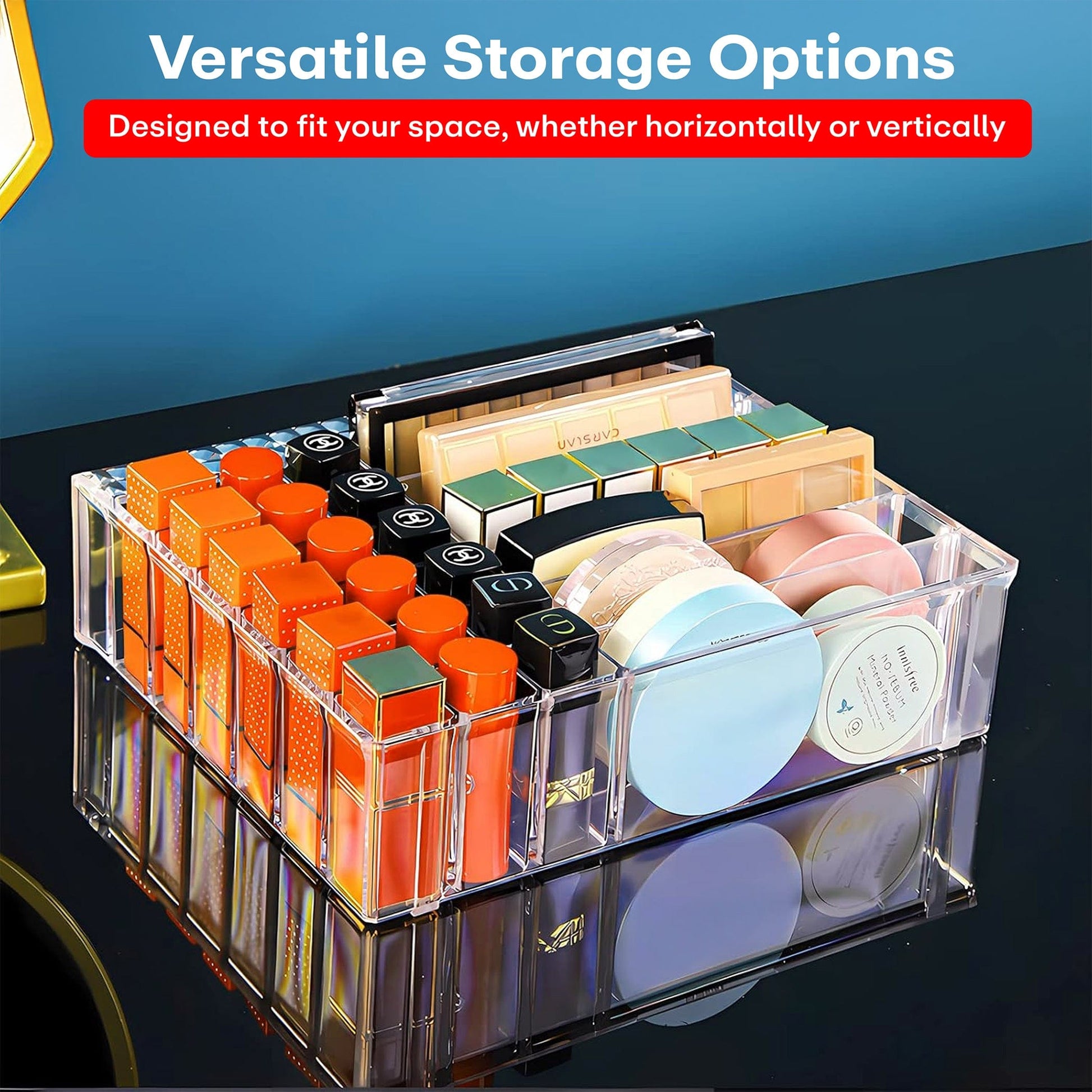 Space Saving Tidy: This functional makeup pallet organizer has 18 slot lipstick organizer, 6 eyeshadow palette makeup organizers and 1 layer top perfume storage. Perfect for drawers, dressing tables, and bathroom countertops.
