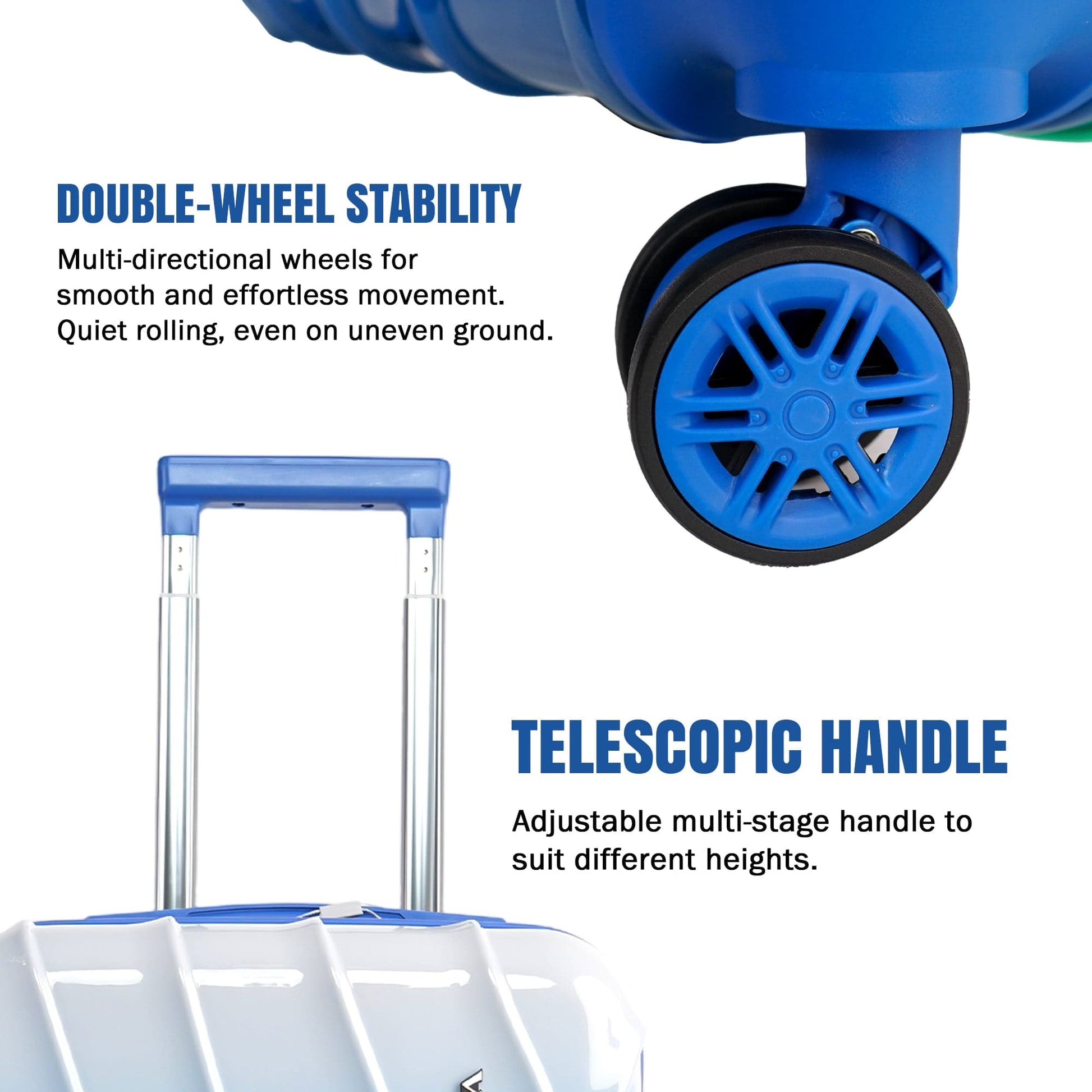 Made from premium ABS material, these hard-shell suitcases are lightweight yet impact-resistant, providing maximum protection for your belongings. The 360° smooth spinner wheels and adjustable telescopic handle ensure effortless maneuvering, while the TSA-approved lock secures your luggage during travel.