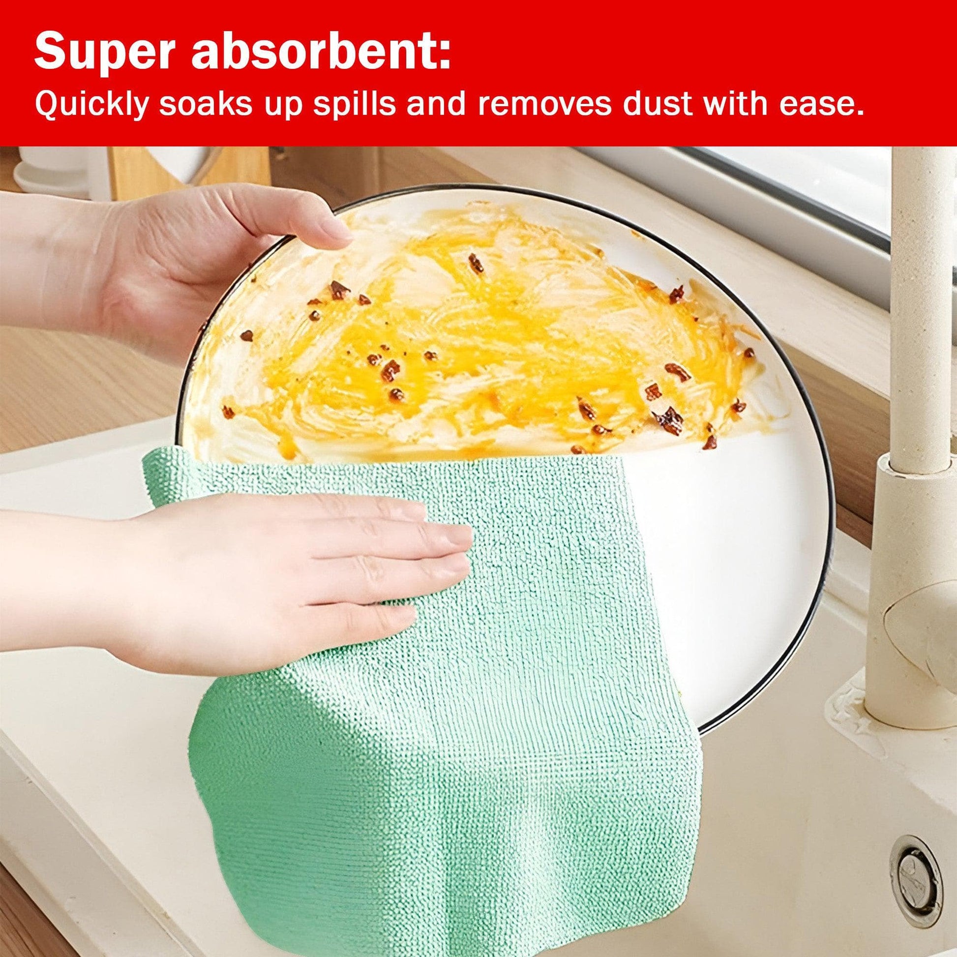 Premium Matcha Green Microfiber Cleaning & Drying Wipes, 20×20 cm. Soft, absorbent, and reusable – ideal for dusting, polishing, and drying surfaces. Pack of 20 for everyday cleaning convenience.