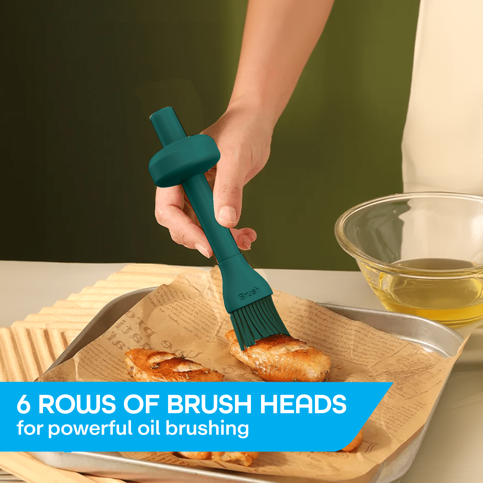 EASY TO USE: The oil bottle has a small spout to let you pour oil through the nozzle and you can press brush top to speed up the oil stream or you can use the silicone brush secured on the lid to evenly coat your food.