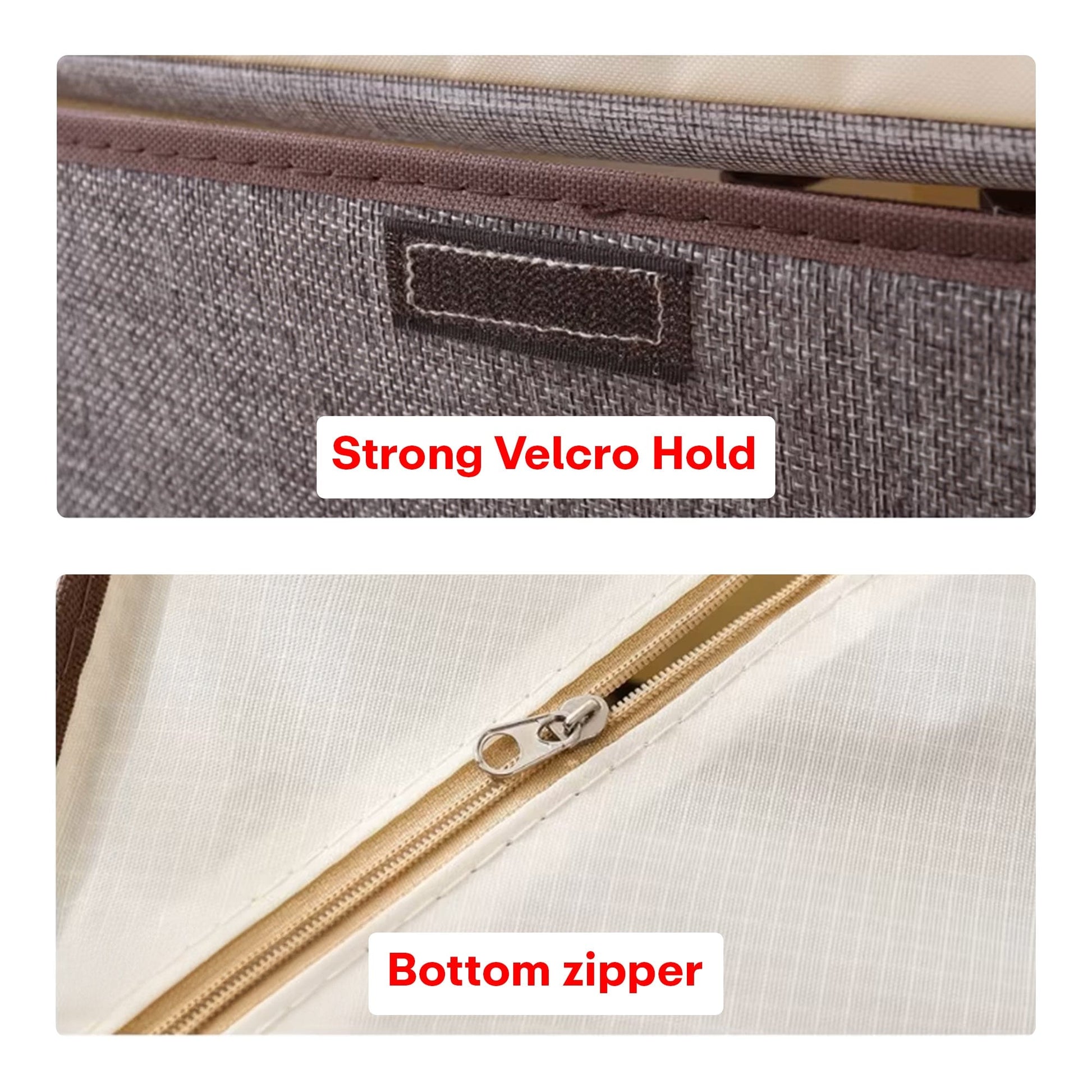 - Easy to Carry =Designed with two sewn-in handles, this cloth organizer is simple and practical, making it easy to move from one place to another, whether it’s for cupboard or linen closet storage.