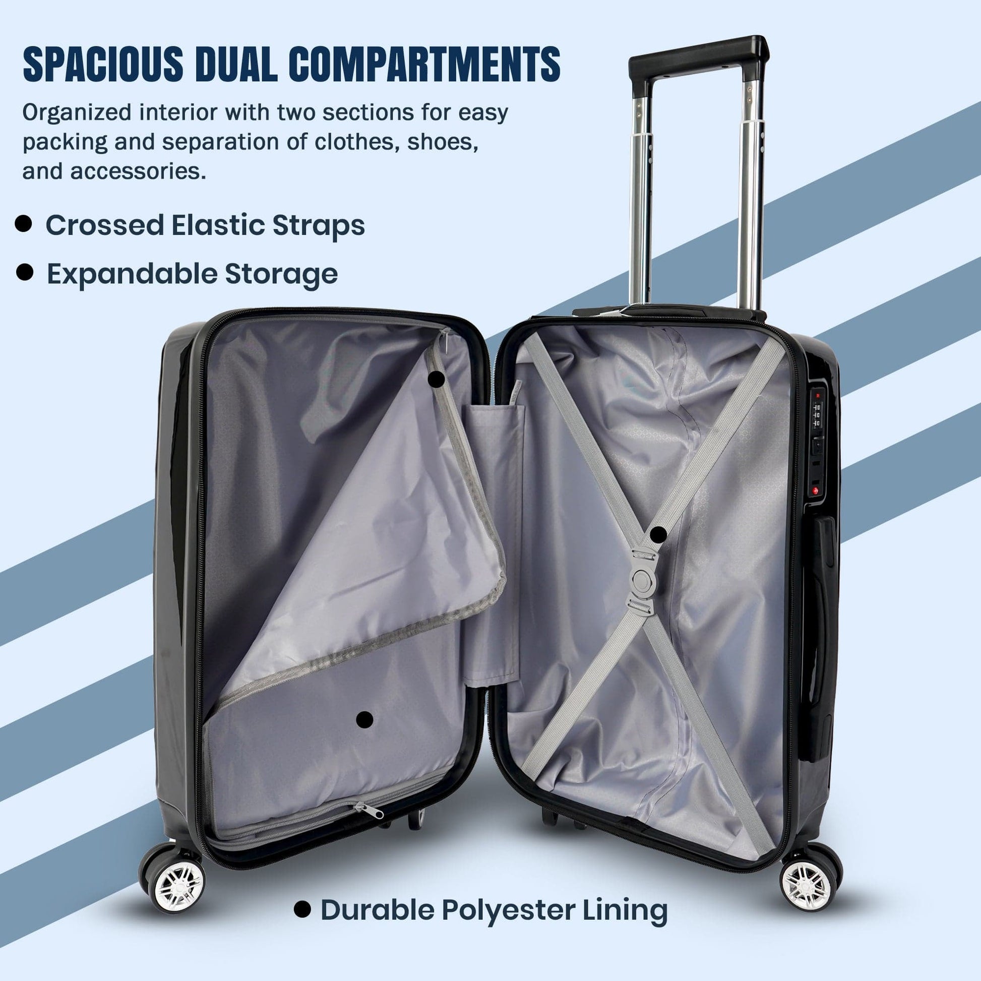 Premium Hard Shell Luggage Set of 3 (20” + 24” + 28”) – Stylish Black Trolley Bag Combo
