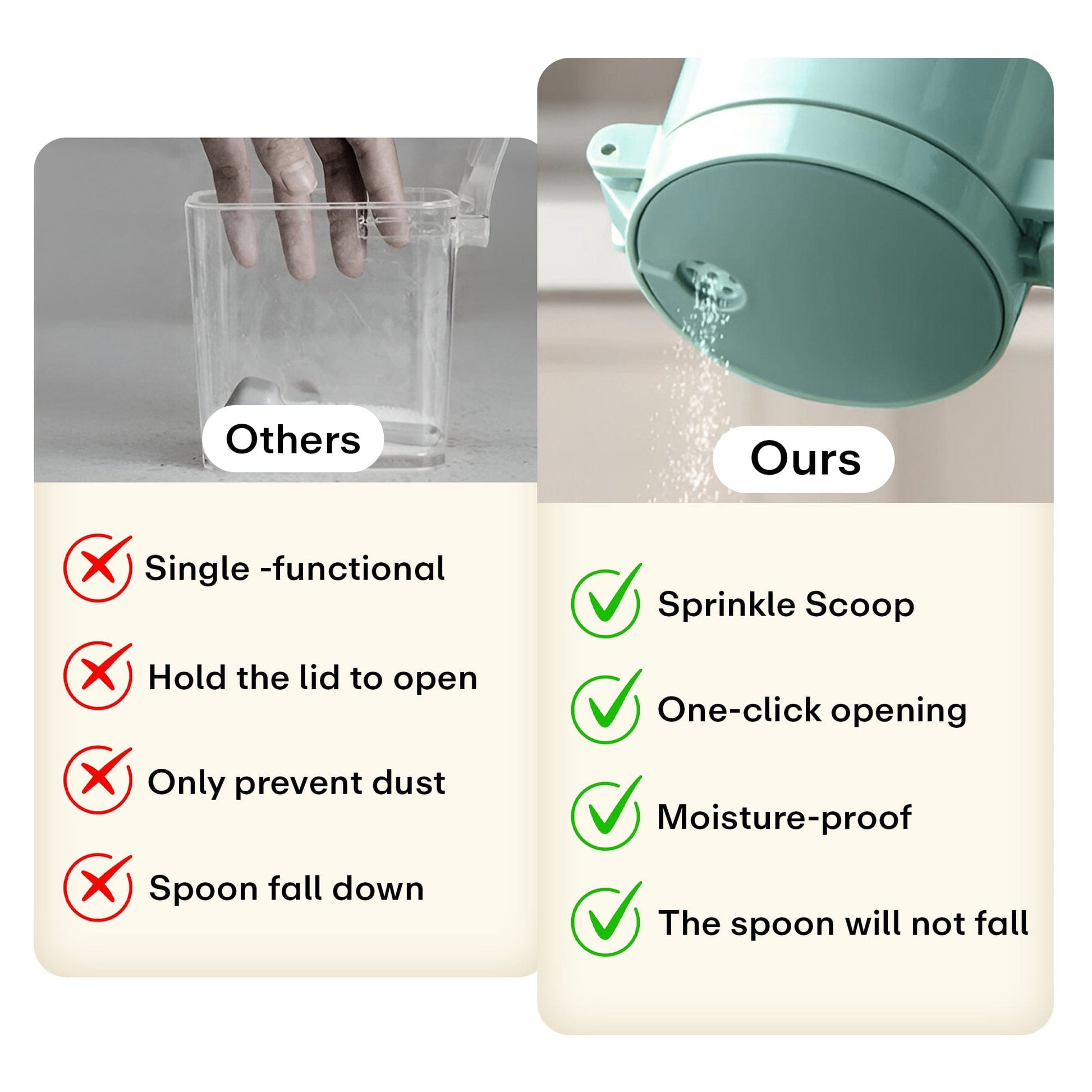 Versatile Use: Ideal for spices, sugar, salt, coffee, tea, baking ingredients, and more.