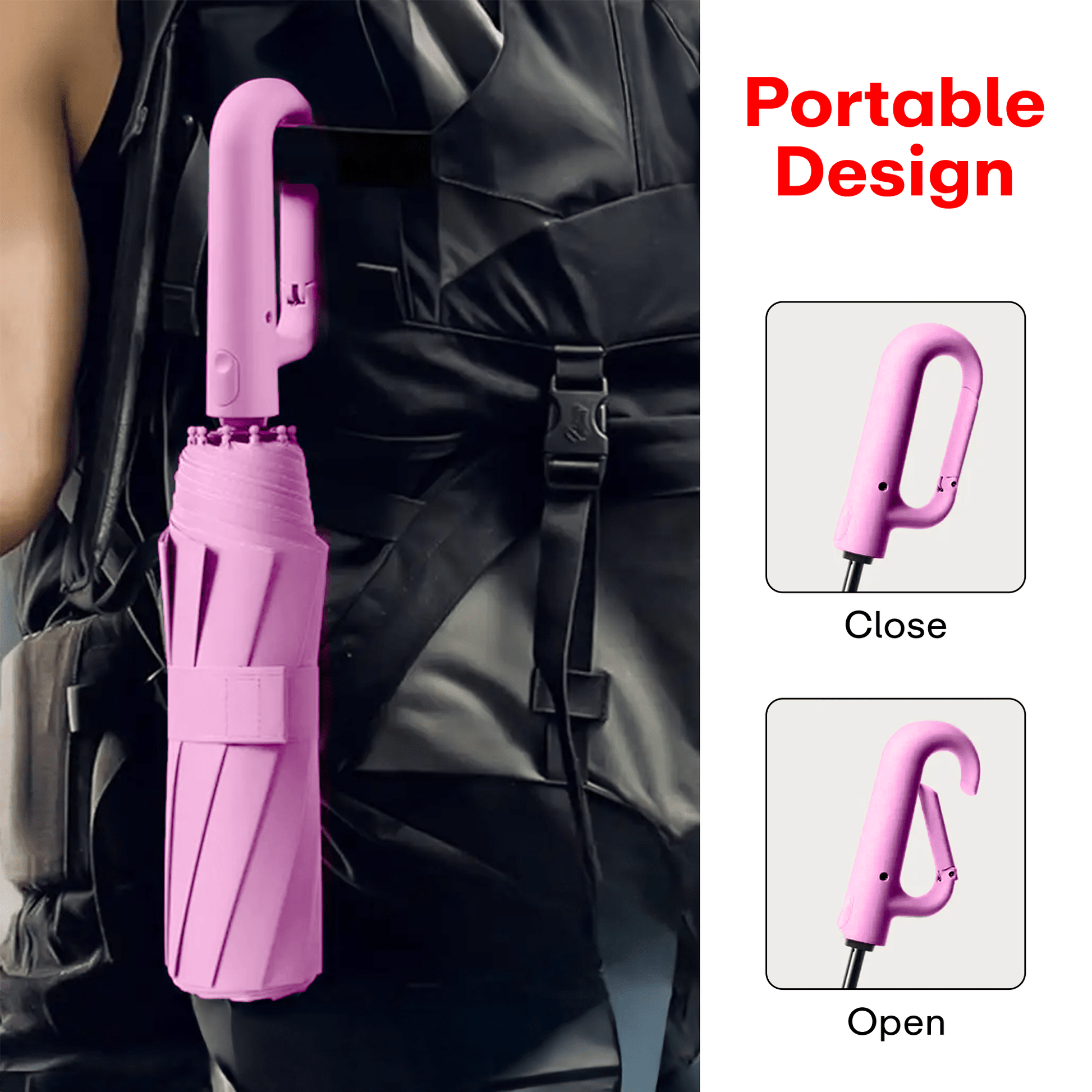 - Lightweight and Compact: Weighing only 18g and measuring 20cm long, this ultra-compact umbrella easily fits into your pocket or bag. Enhanced Button Design: The easy-press button lets you open and close the umbrella quickly and with minimal effort.