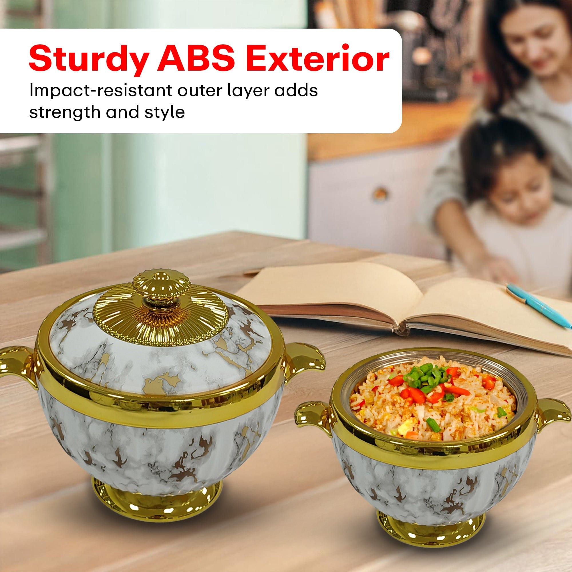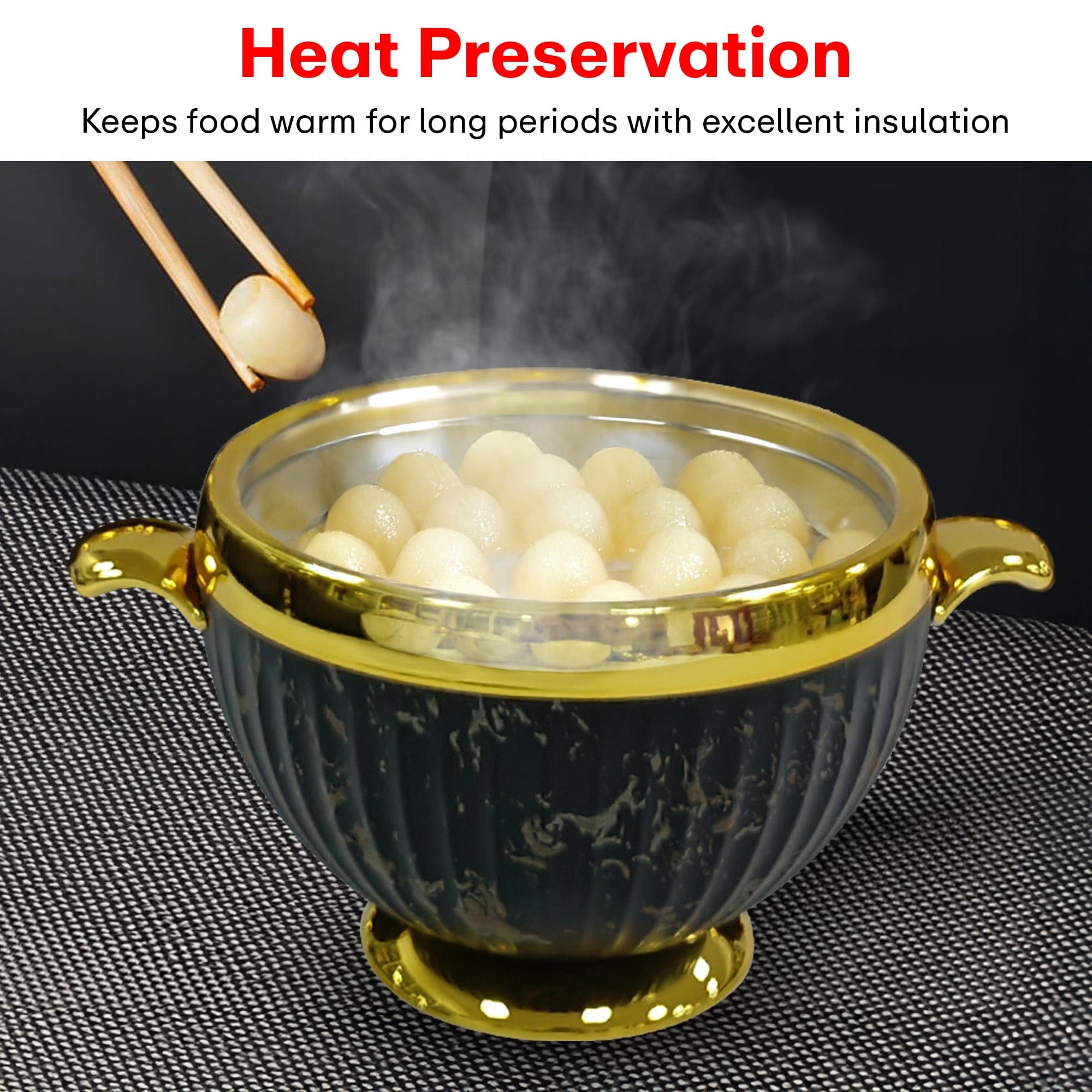 Superior Heat Retention: Double-wall insulation keeps food hot and fresh for hours