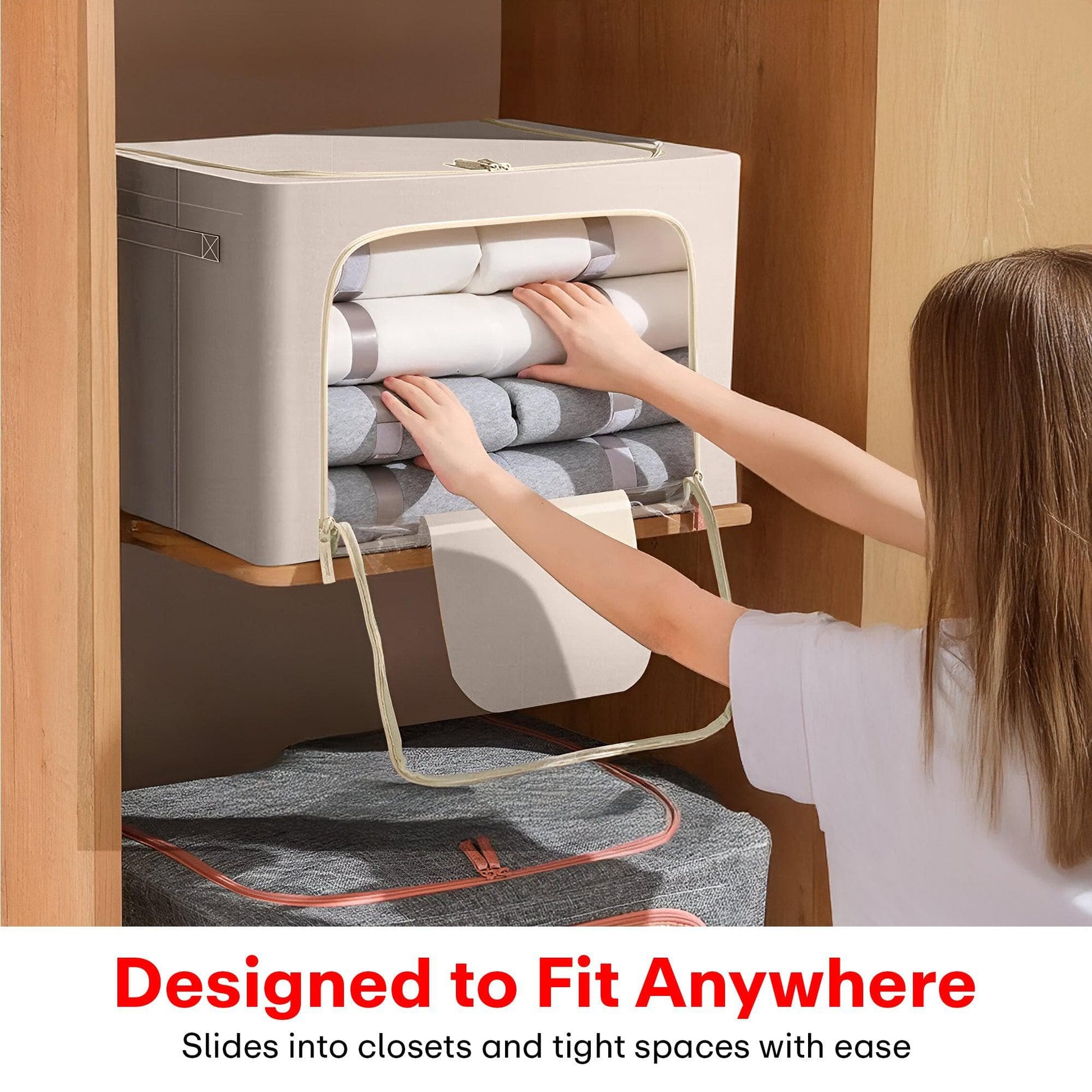 - Attached lid protects contents from dust and dirt; keeps clothes neatly stored Designed to fit sweaters, pants, shirts, linens, toys, and accessories in wardrobes and shelves