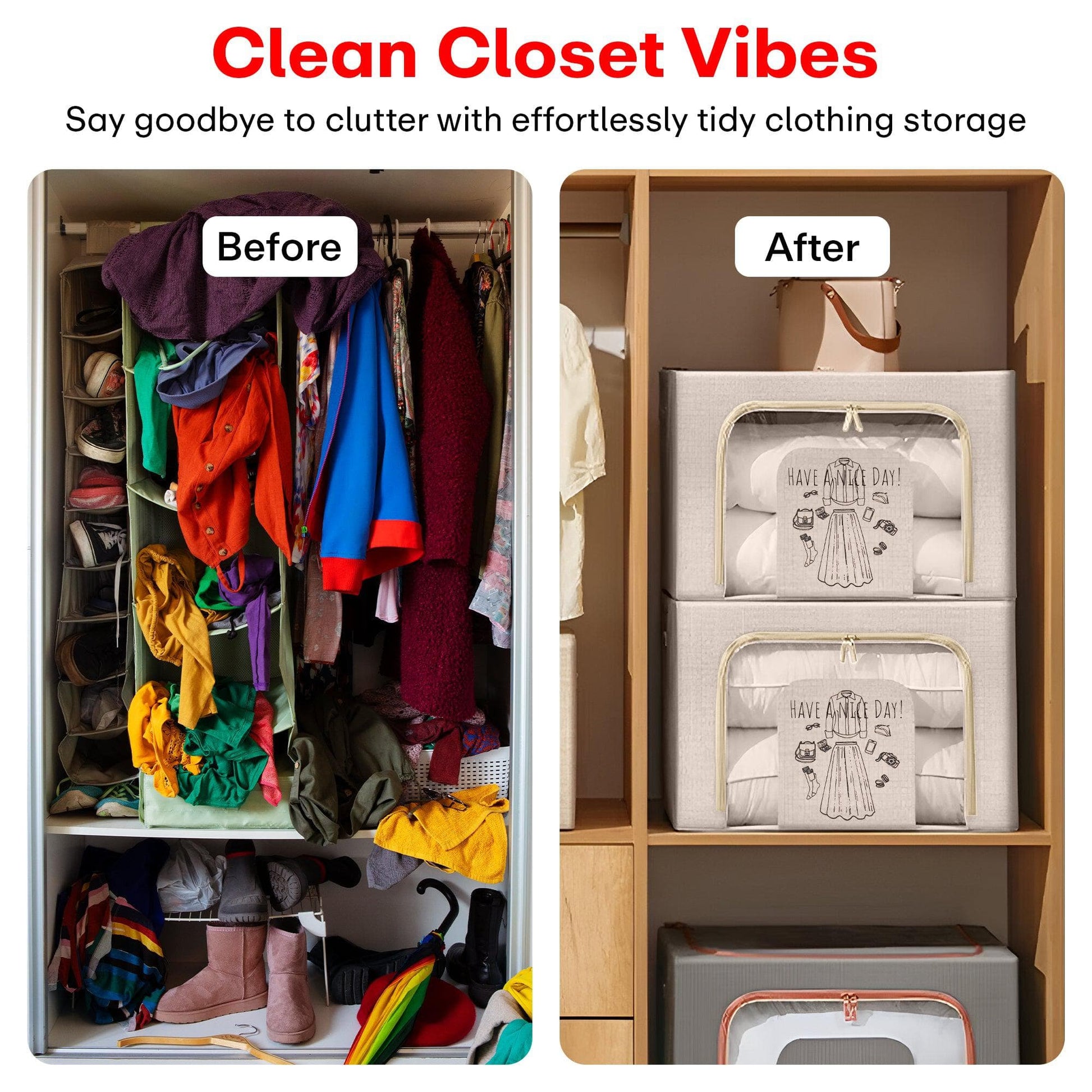 - Foldable storage box (38x25x21 cm) with bamboo front for versatile clothing and home organization