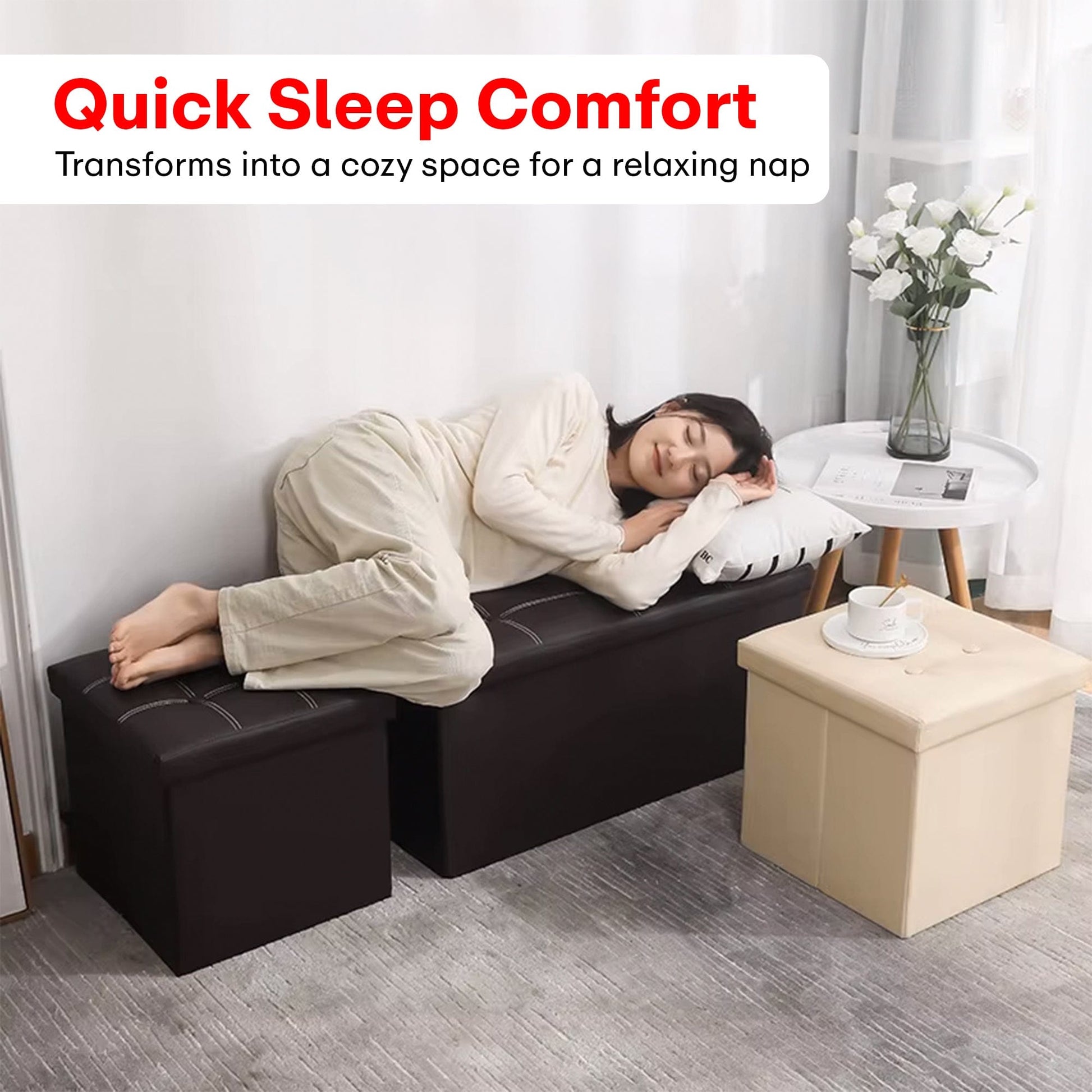 Add Elegance And Functionality To Your Space With The Prime Pick Black Leather Storage Stool! This Multipurpose Ottoman Serves As A Comfortable Seat, Hidden Storage Solution, And Stylish Décor Piece For Your Home Or Office. Made From Premium Faux Leather, It Offers A Sleek Look While Keeping Your Essentials Neatly Stored. Its Foldable Design Ensures Easy Storage When Not In Use, Making It Perfect For Small Spaces.