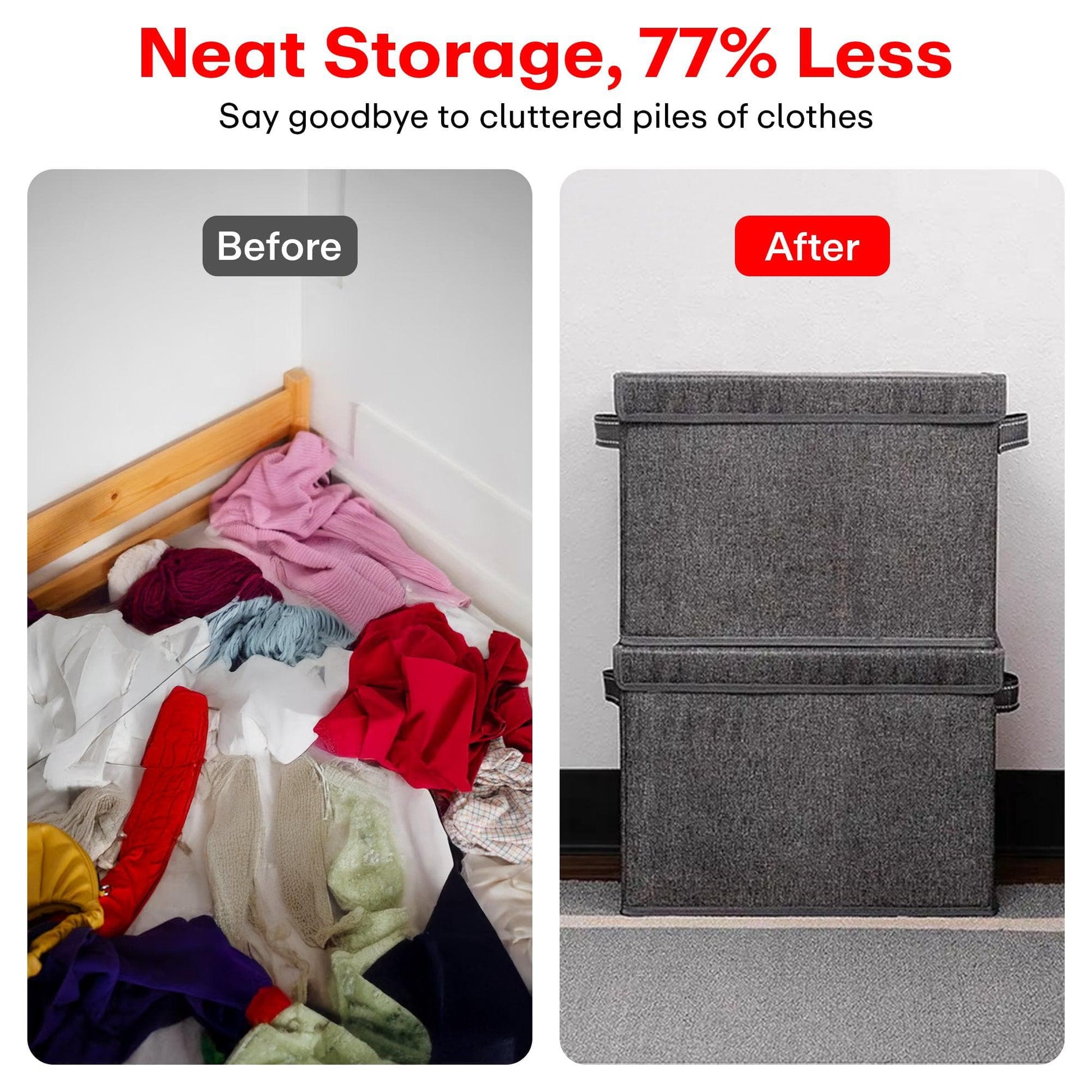 - Versatile Storage Solution: Ideal for organizing clothes, jeans, t-shirts, socks, underwear, and more; perfect for use in closets, wardrobes, bedrooms, and laundry rooms. Protective Lid for Dust-Free Storage: Includes a lid to shield your clothes from dust, moisture, and dirt, ensuring they stay clean and neatly stored.