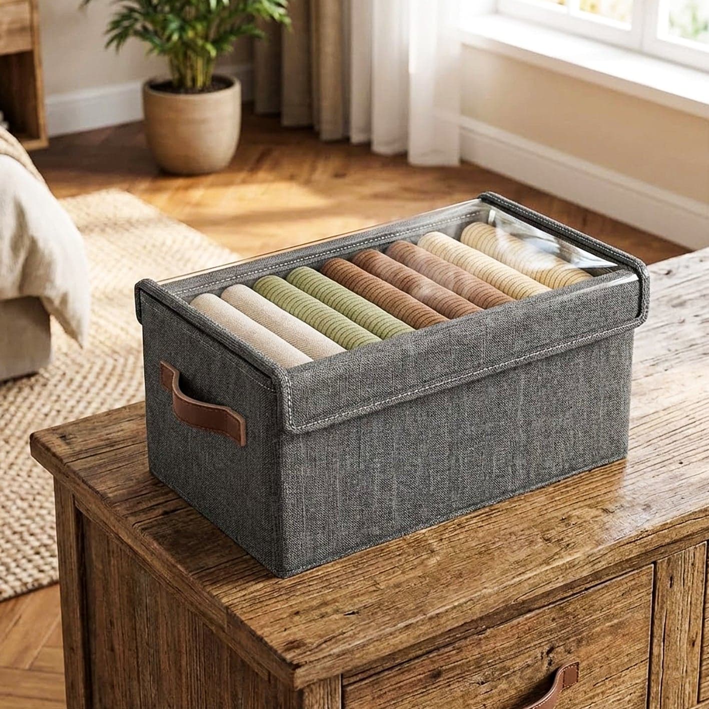 Versatile Storage Solution: Ideal for organizing clothes, jeans, t-shirts, socks, underwear, and more; perfect for use in closets, wardrobes, bedrooms, and laundry rooms. Protective Lid for Dust-Free Storage: Includes a lid to shield your clothes from dust, moisture, and dirt, ensuring they stay clean and neatly stored.