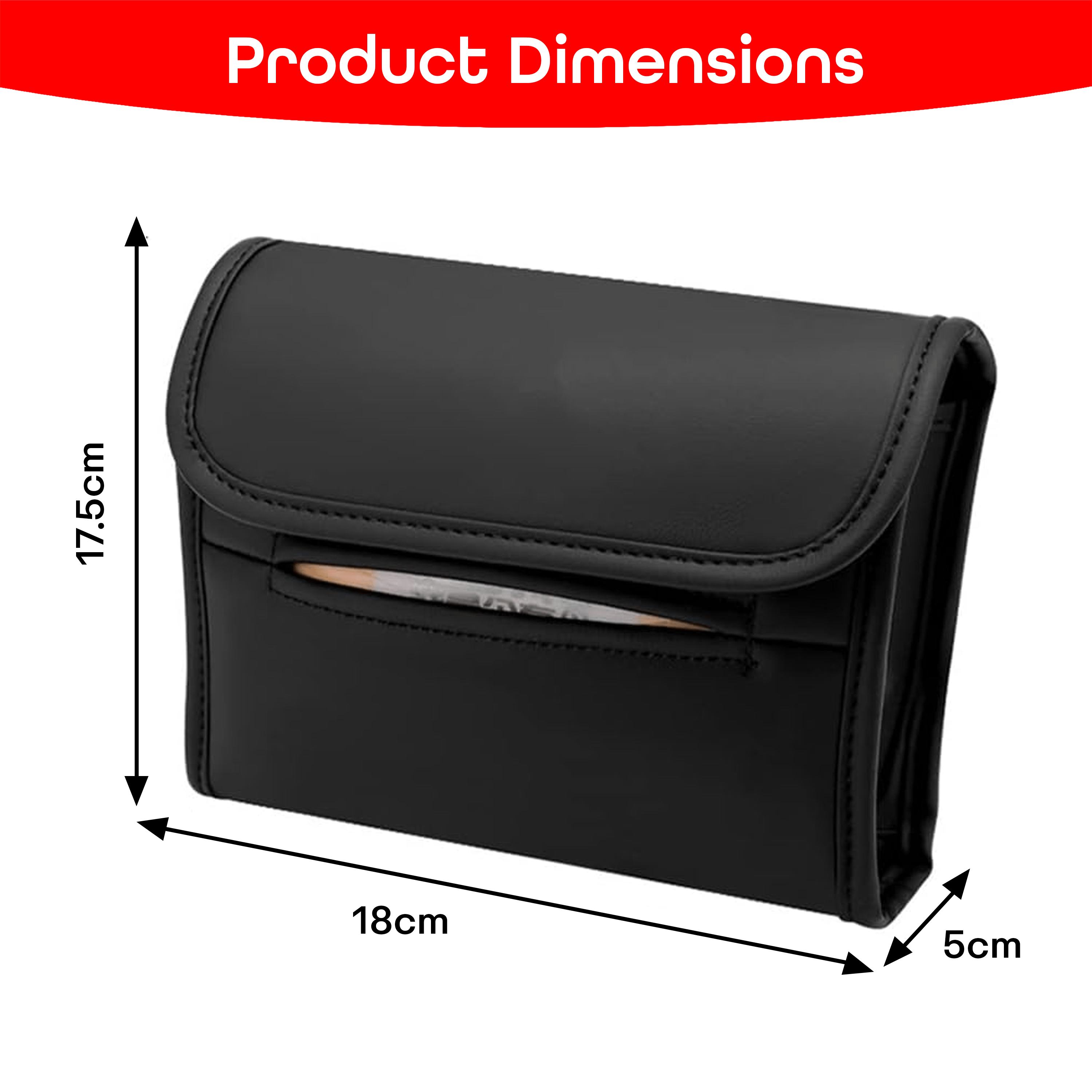 Introducing the multifunctional car tissue box holder! With high breathability and no odor, it's perfect for personal use in various scenarios. Easy installation in just 1 second makes it a breeze to operate. You'll love its versatility and convenience. Car Tissue holder is made out of PU leather that keeps your tissue, napkins, and masks in an organized manner. Our car tissue box feature a perfect cutout to remove the tissues as well as a Velcro to refill the tissues.Fix the Tissue Box Holder Anywhere Inside the Car.suitable for most cars. Can be fixed on the car sun visor, car door, car backseat, etc. A handy car tissue box that doubles as a perfect gift for family, colleagues, and friends who love driving. The durable and stylish design makes it a thoughtful present, great for personal use or gifting, and ensures comfortable and enjoyable car journeys.