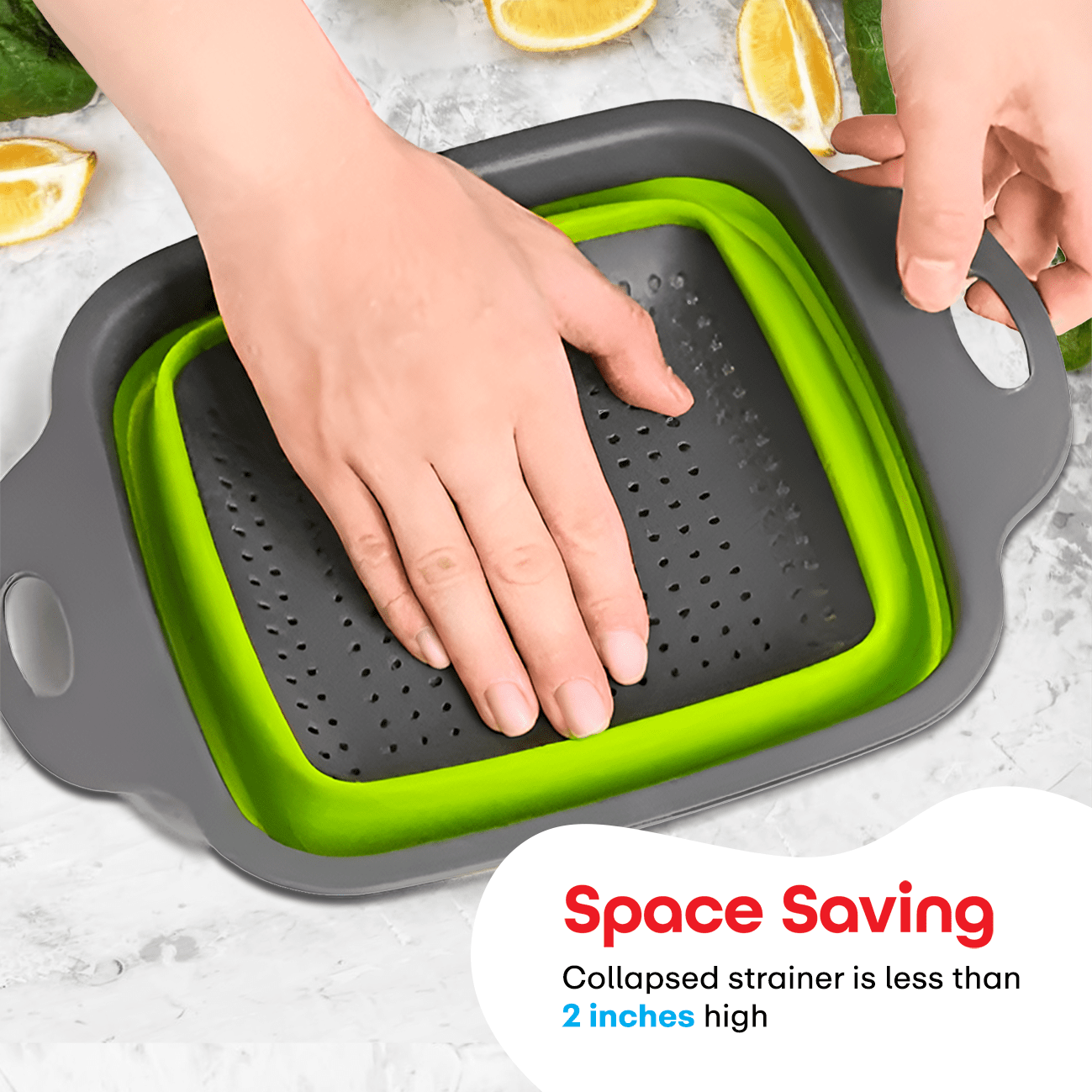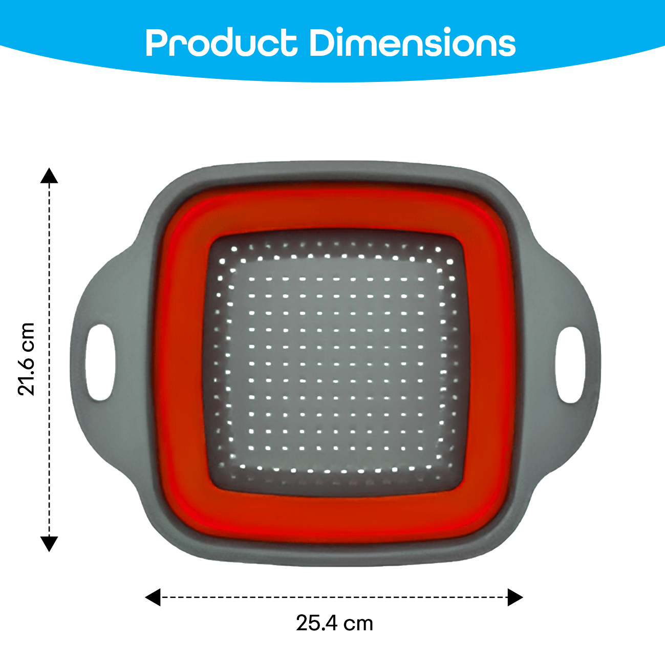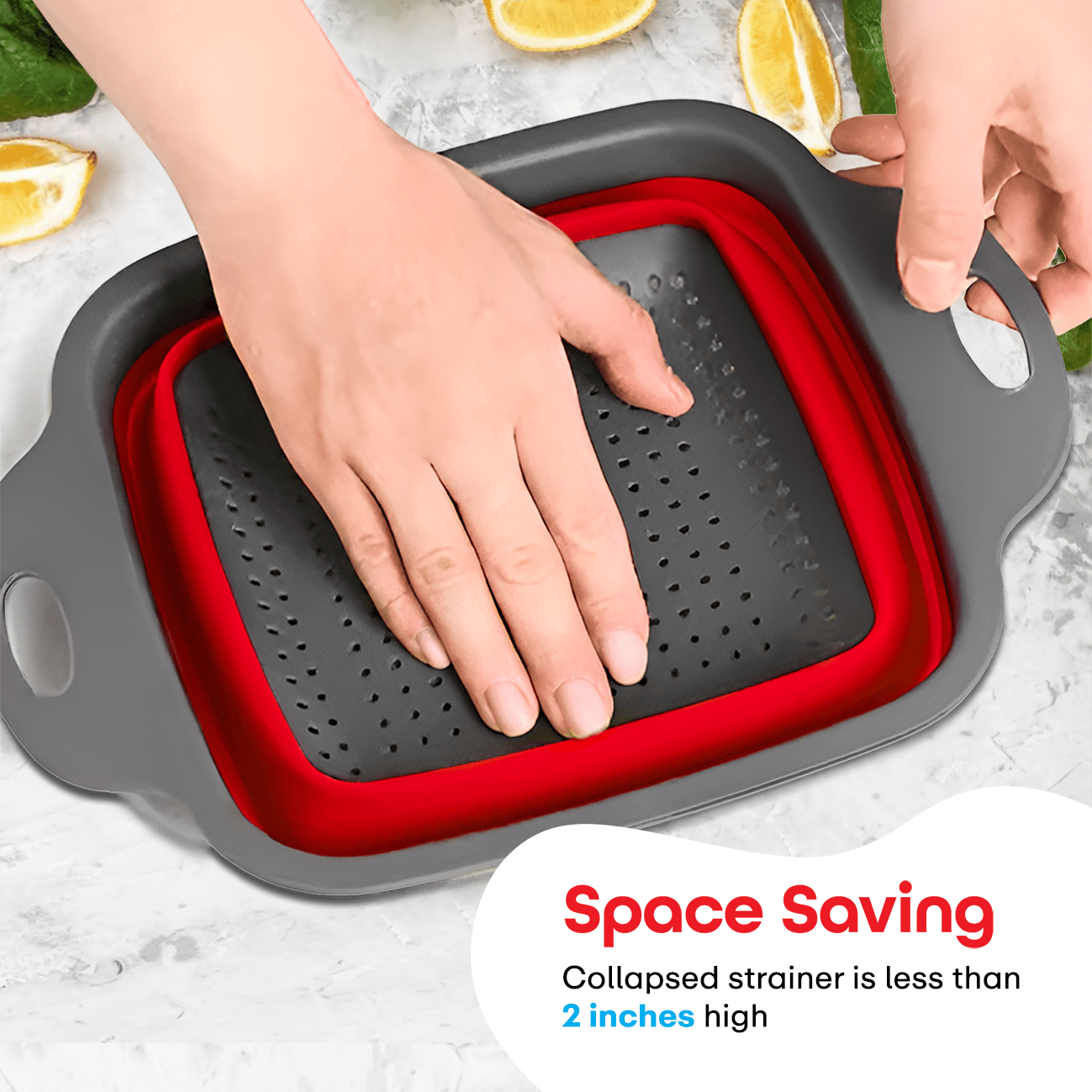• COLLAPSIBLE, FOLDABLE, SPACE SAVING DESIGN: Ergonomic, space-saving design. Strainers are foldable, so they do not take up much needed room in your kitchen cupboards. Collapsed strainers is less than 2 inches high.