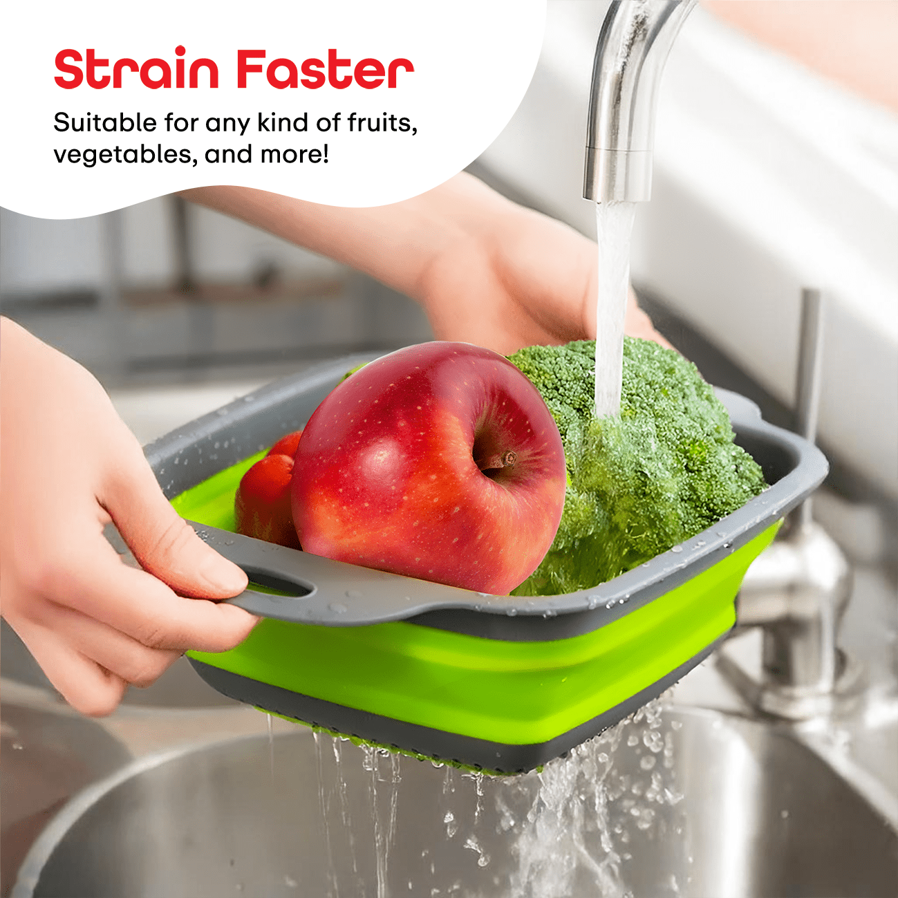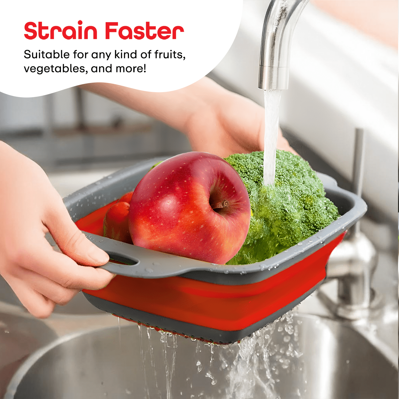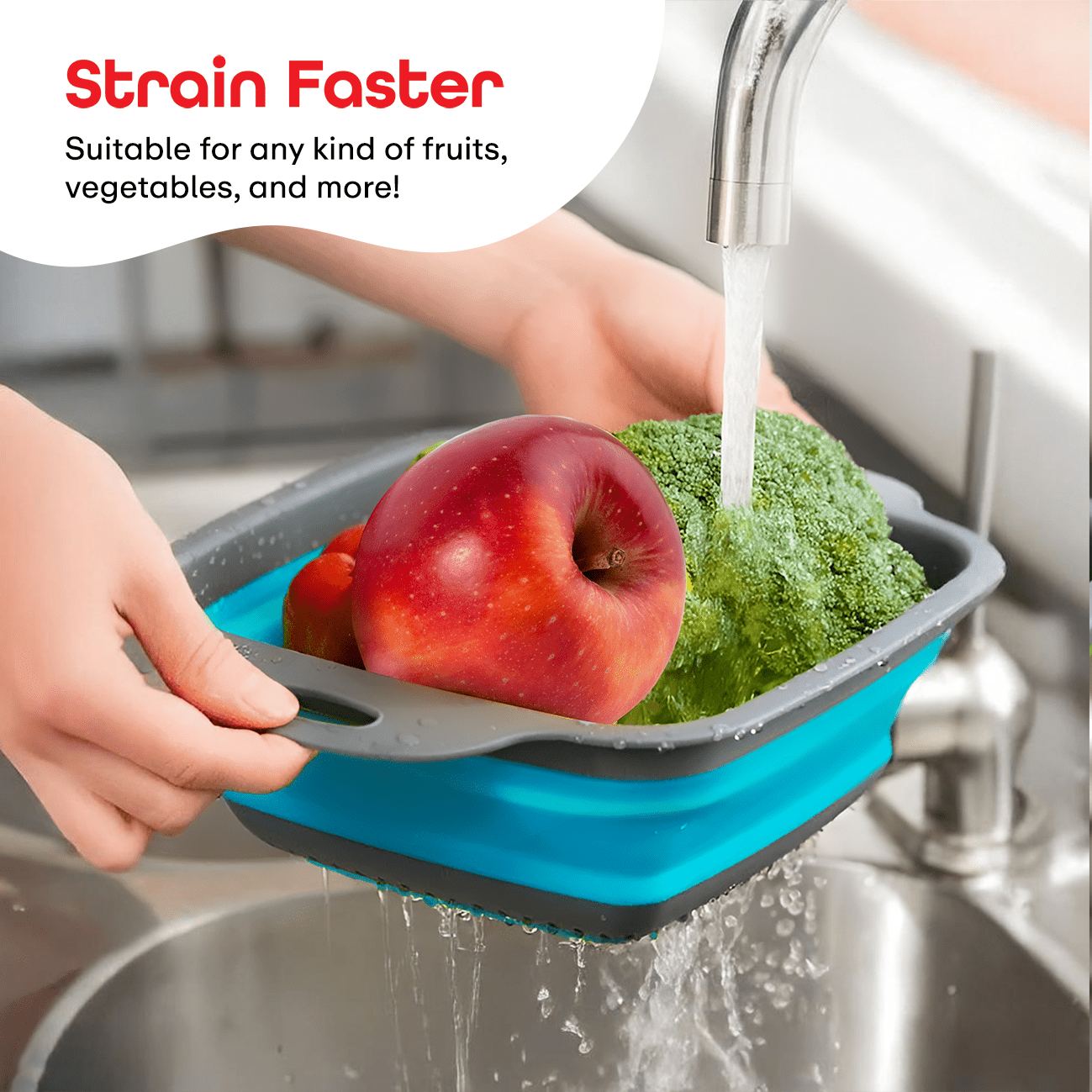 Very handy for washing vegetables and fruits — drains fast and collapses for easy storage