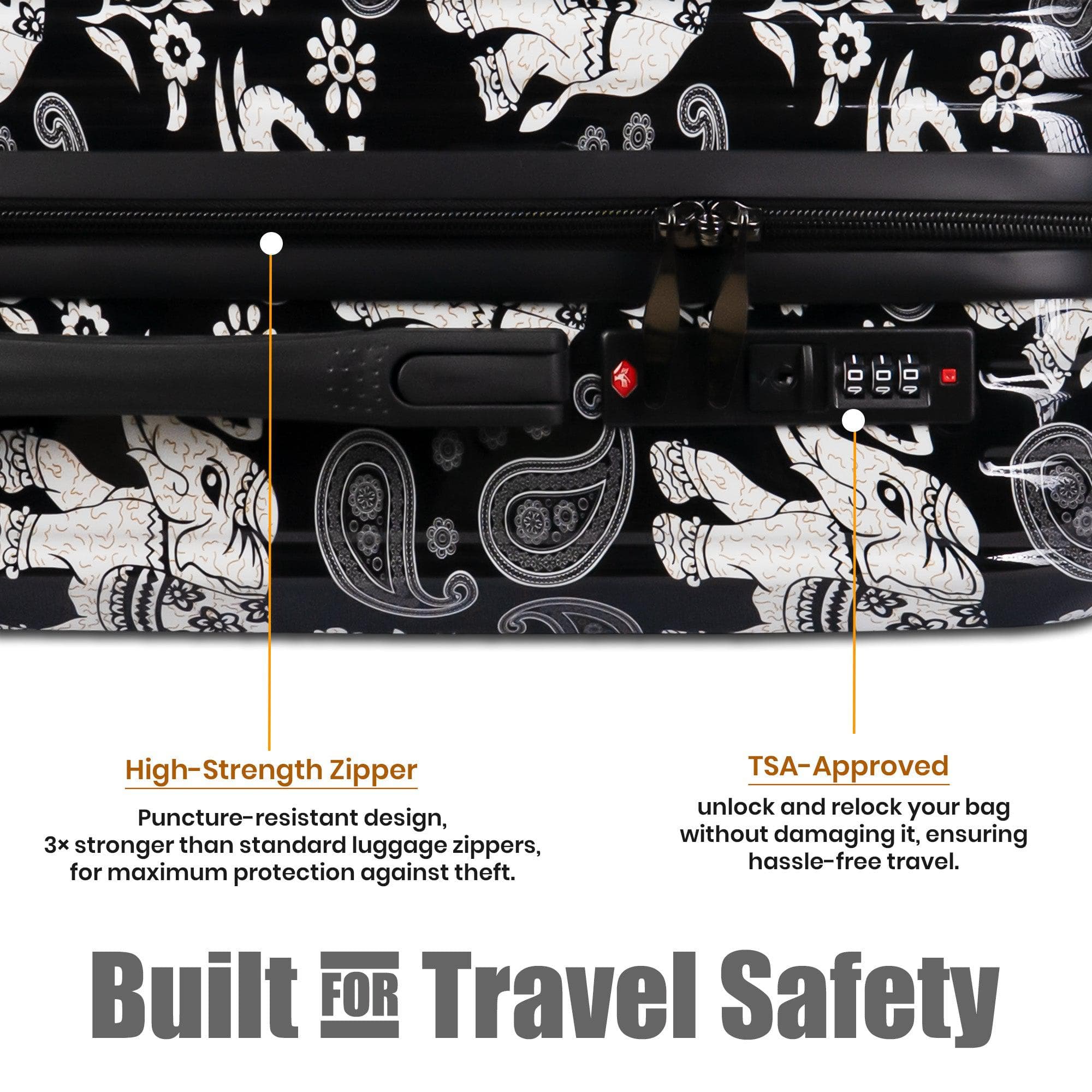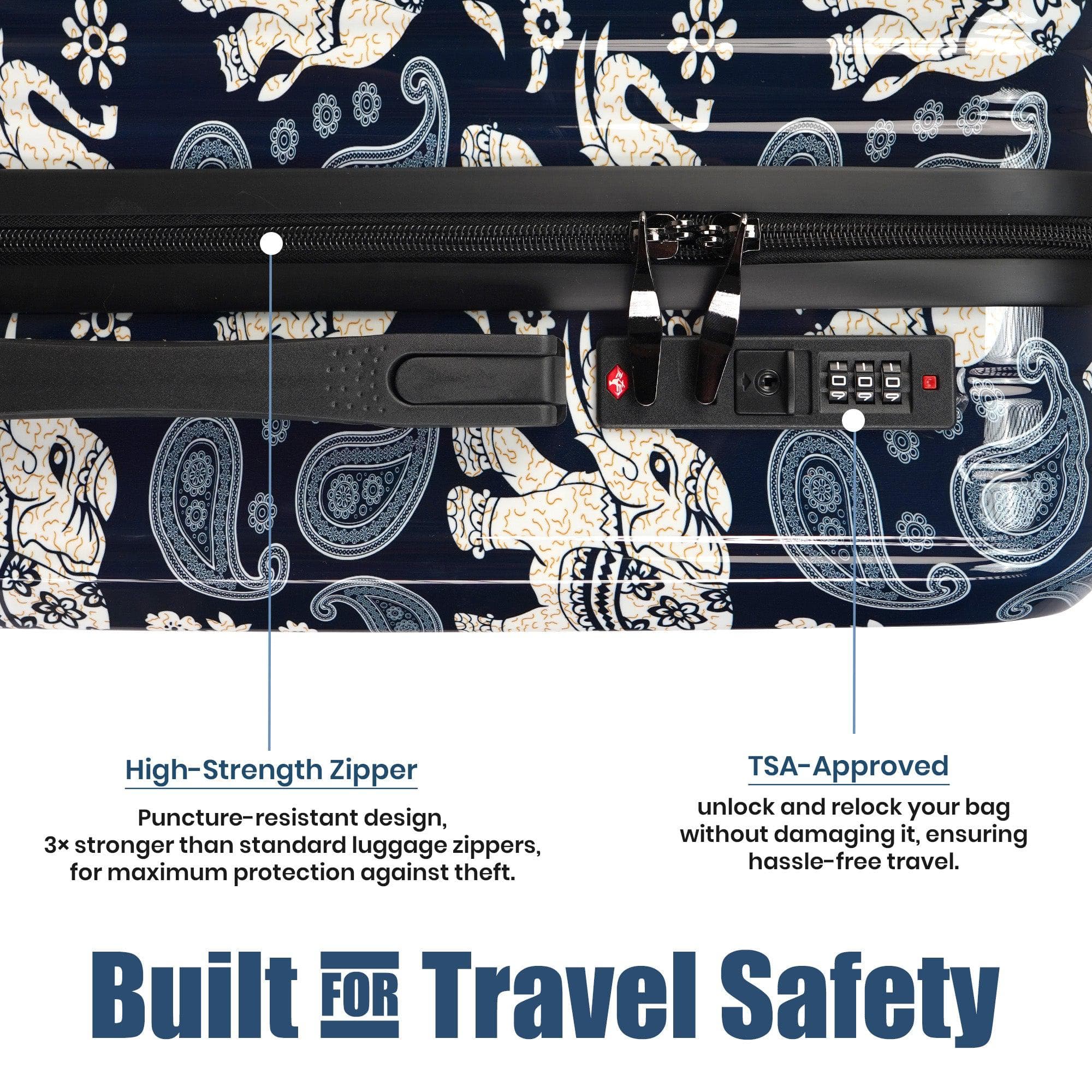 Unique Design: Featuring intricate elephant patterns, Velvair luggage offers a touch of personality to your travel gear.