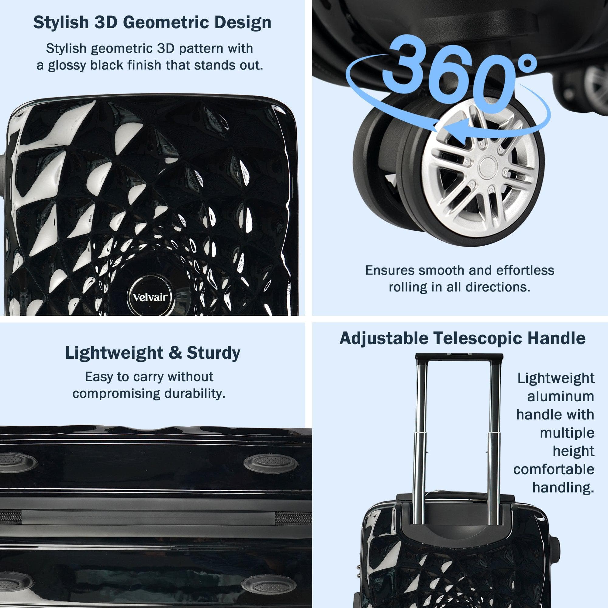 Travel in confidence and elegance with the Velvair 20″ Black carry-on — designed for the modern traveler seeking style, durability, and convenience in a compact, airline-friendly package.